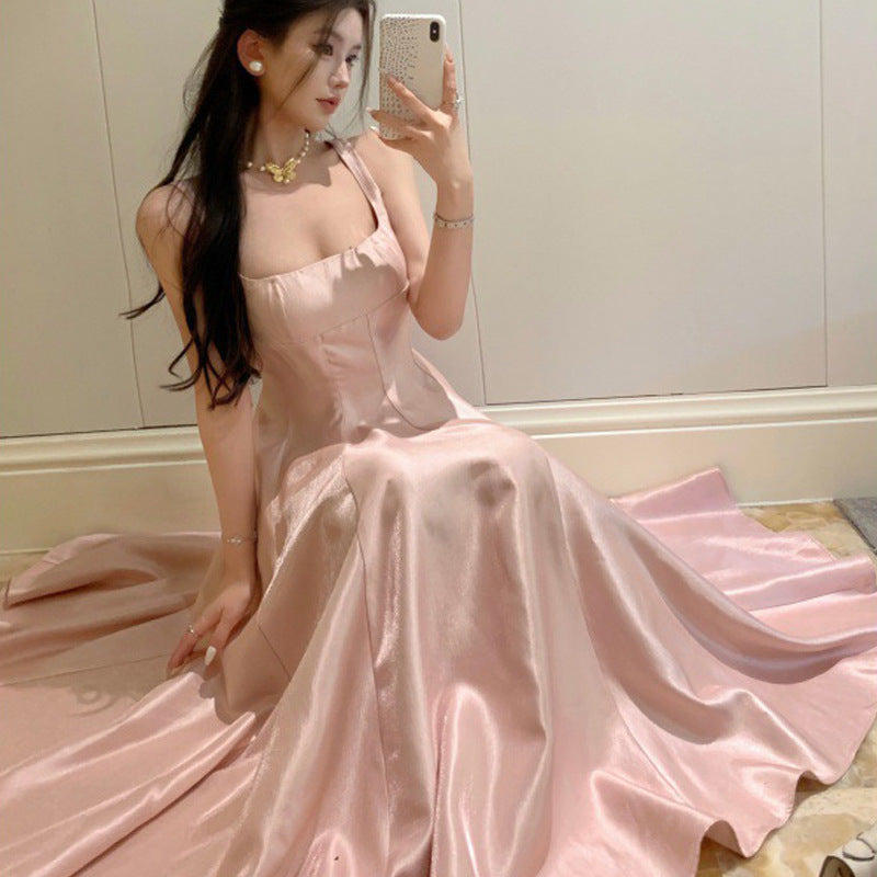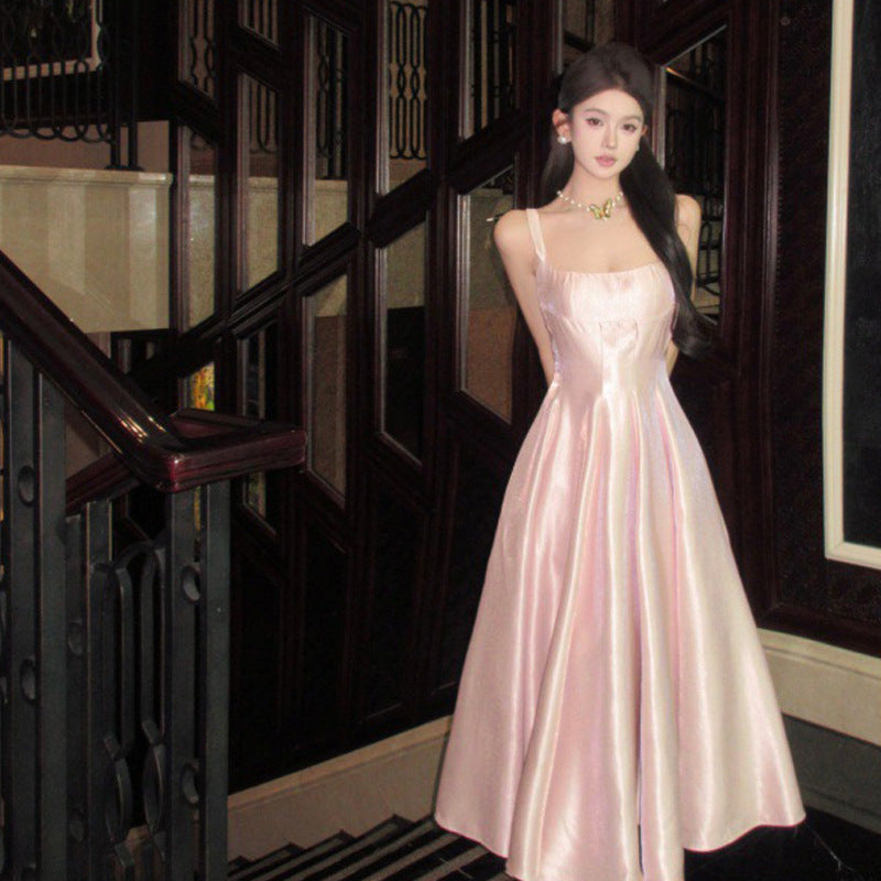French Pink Fading Dress With Sling Dress Birthday Dress Big Swing Pony Dress Woman