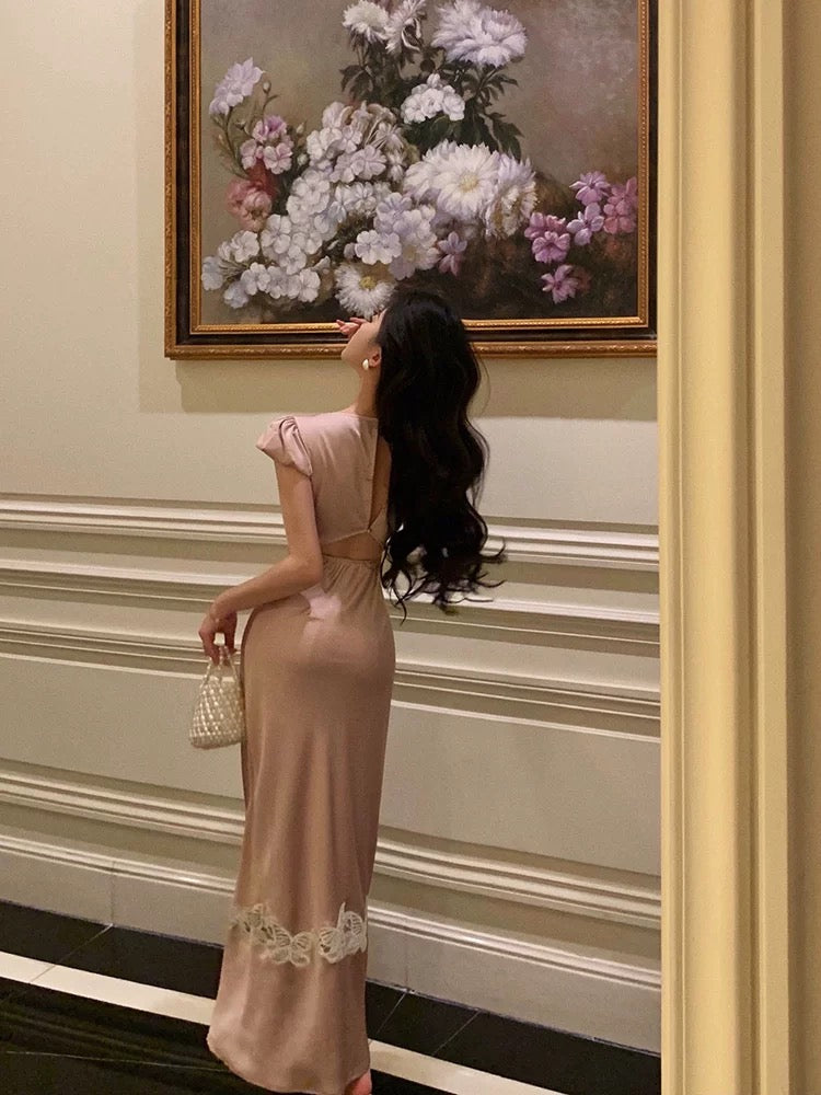 French Sheath V Neckline Long Pink Prom Dresses Birthday Outfits Evening Gown SD1053