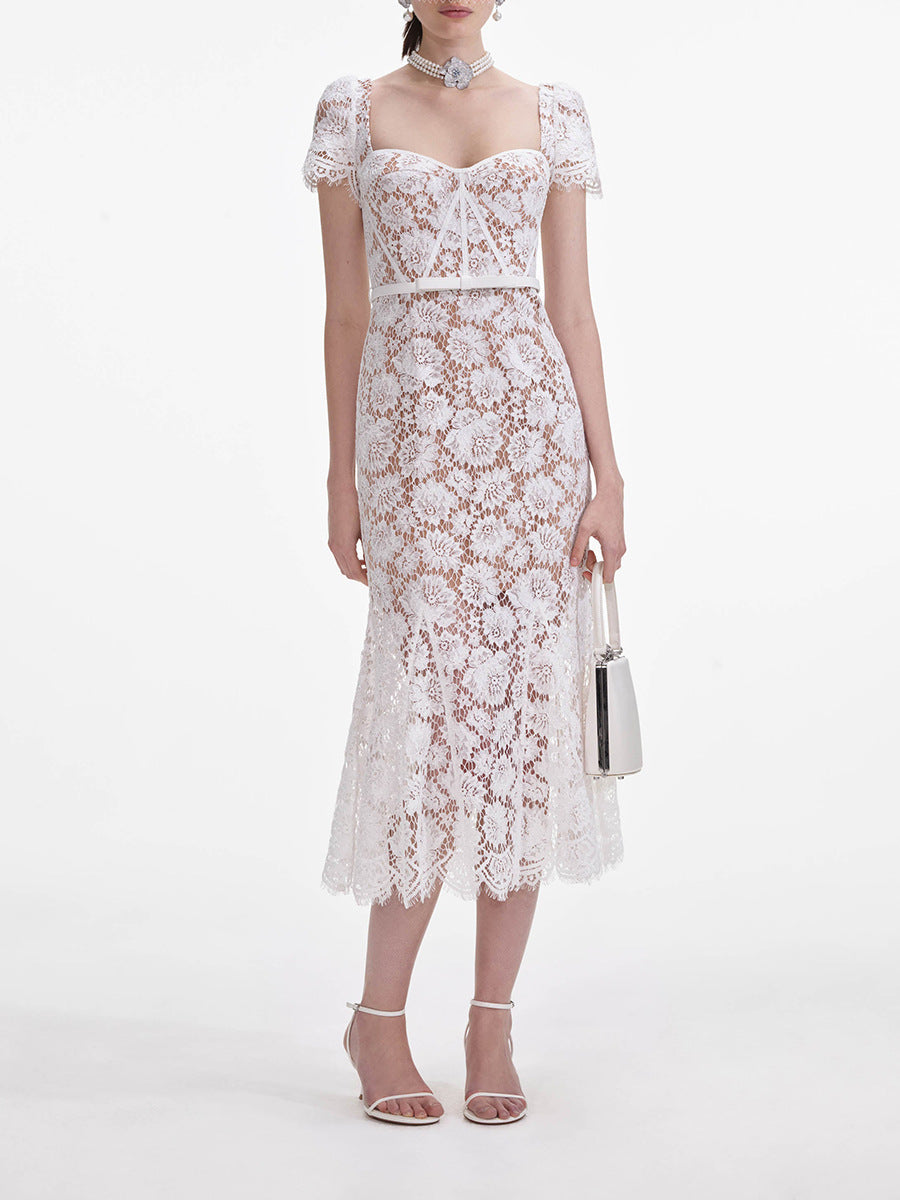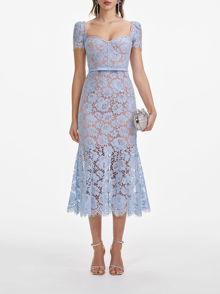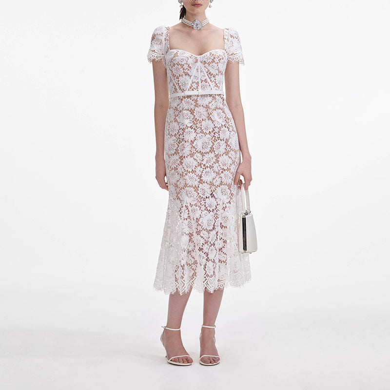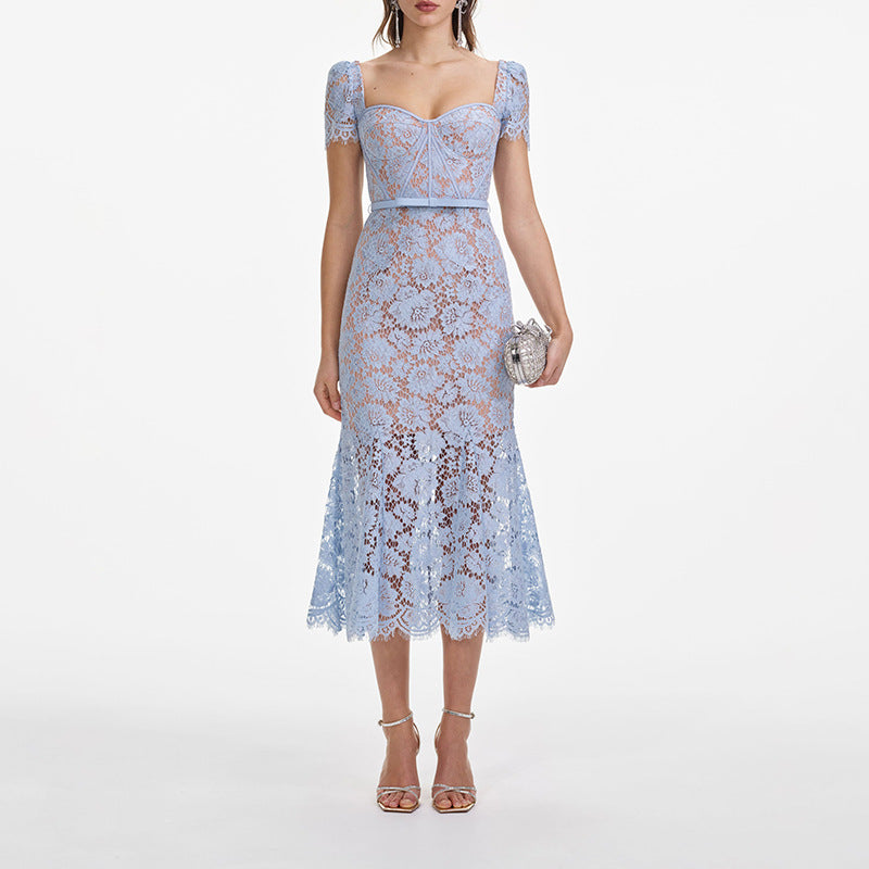 Garden High-Ded Lace Square Dress 2025 New Short-Sleeved Waist Solid Color Waist Dress Women Summer Dress