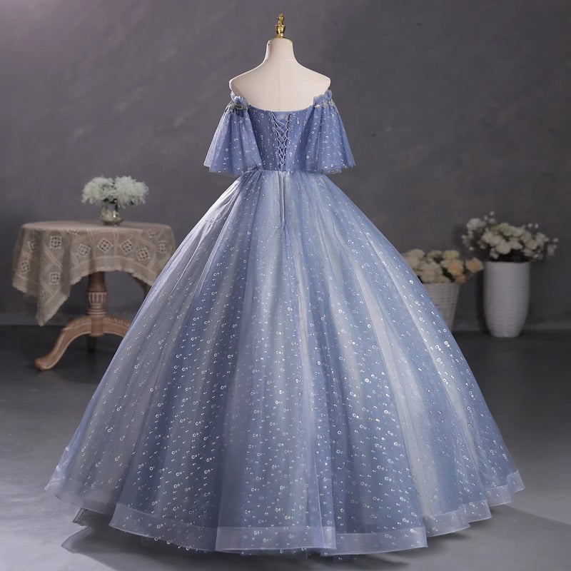 Gray-Blue Temperament Beautiful Solo Performance Costume Student Vocal Art Canopopy Skirt Annual Meeting Host Evening Dress
