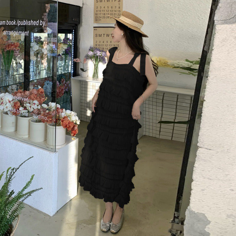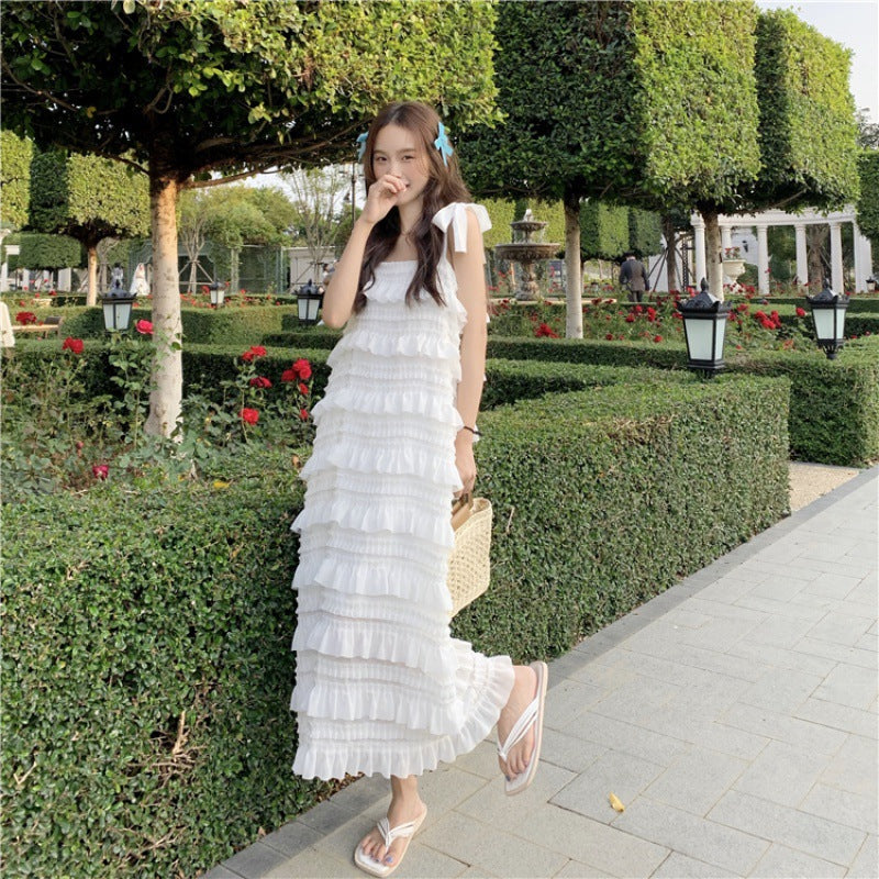 Heavy Industry Design With White Sling Dress Women's Summer 2024 New Chiffon Sleeveless Cake Dress