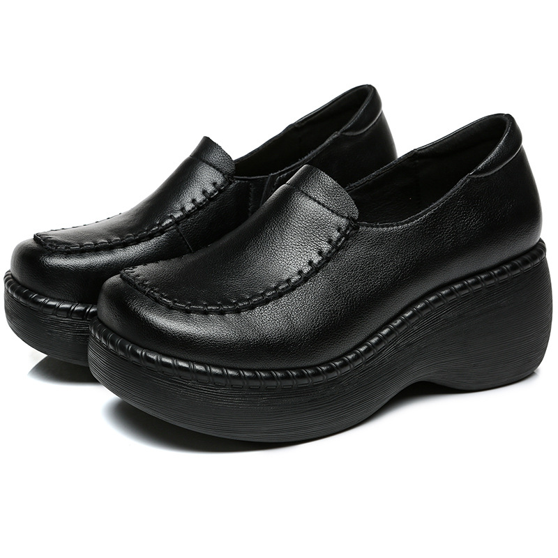 Hedged Thick Sole Suitable For Feet Fat Feet Wide Concili Beauty National Style Solid Color Elderly National Wind Mother Women Singles Shoes High Quality Shoes