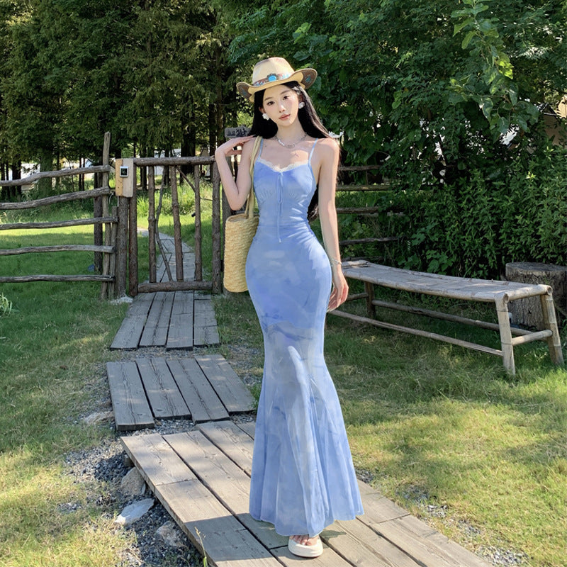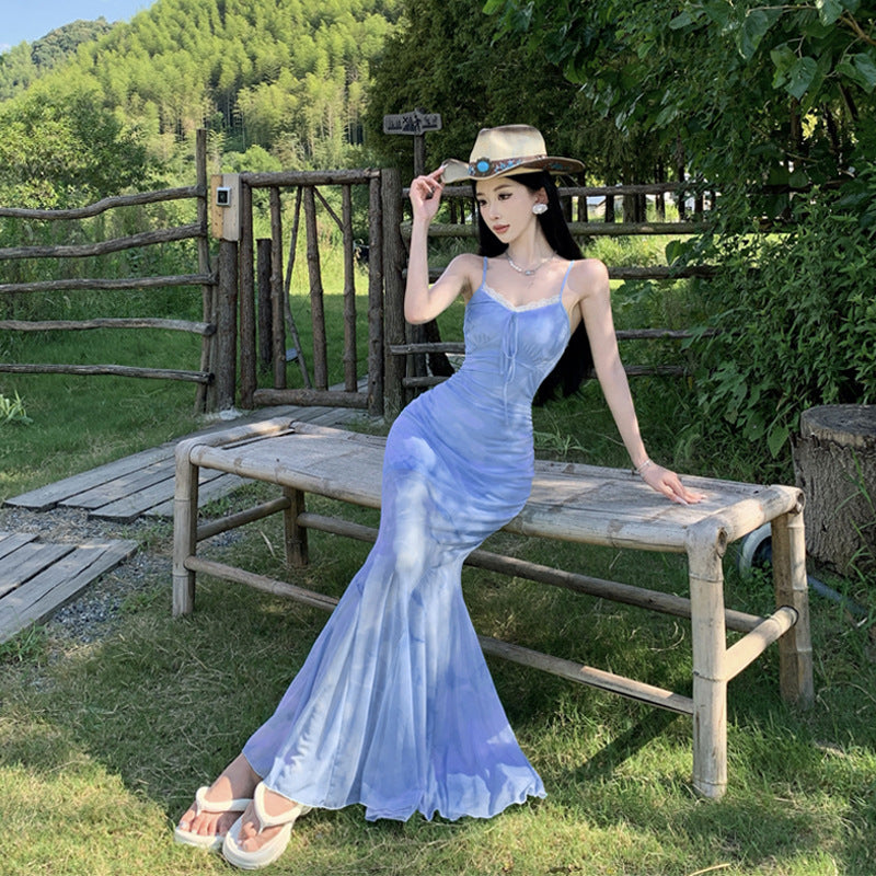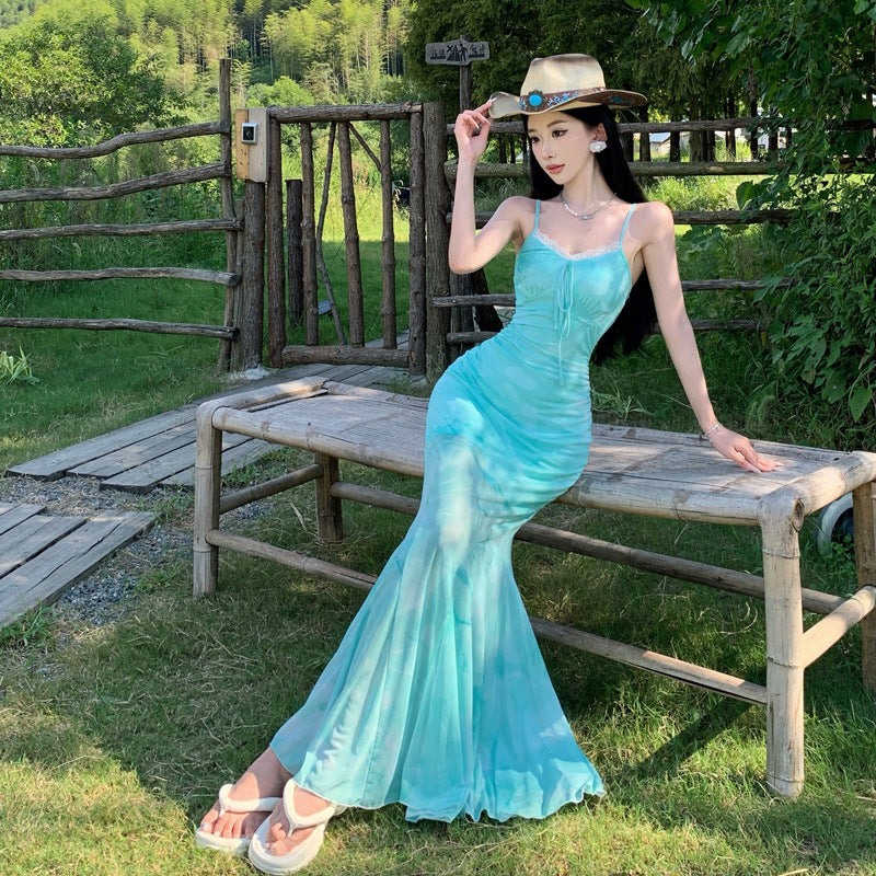 High-End Hottie Dye Mesh Splicing Sling Skirt Summer Temperament Slim Slim Thin Fishtail Skirt