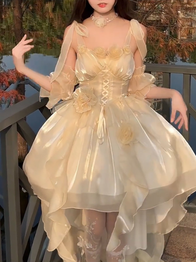 High Low Spaghetti Straps Champagne Holiday Dresses Night Dress Birthday Outfits SD1217