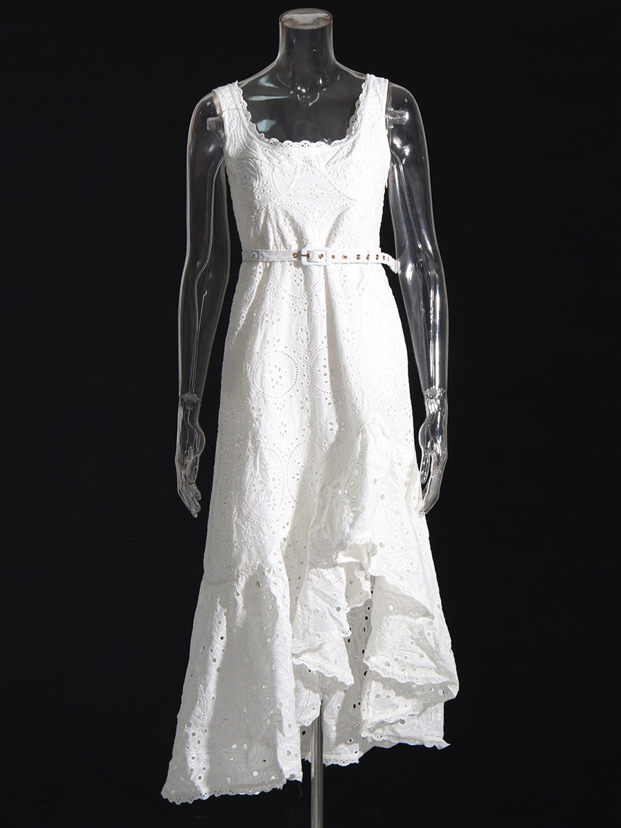 Holiday Dress 2025 New Square Collar Sleeveless Lace Design Mid-Rise Irregular Dress Woman