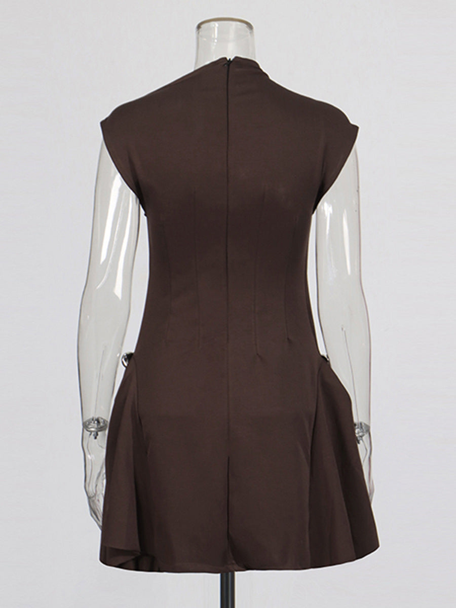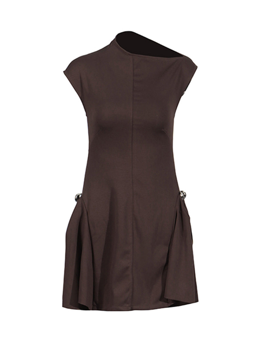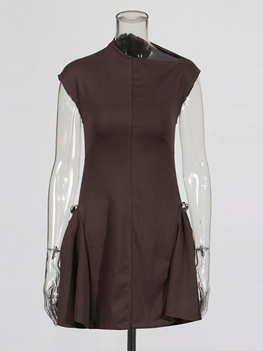 Hot Sleeveless Sexy Style Symmetrical Folded Skirt 2025 Summer New Slanted Waist Dress