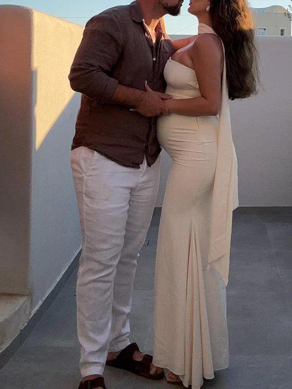 Ivory White Bandeau Strapless Mermaid Dress With Scarf Cocktail Maternity Maxi Dress Maternity