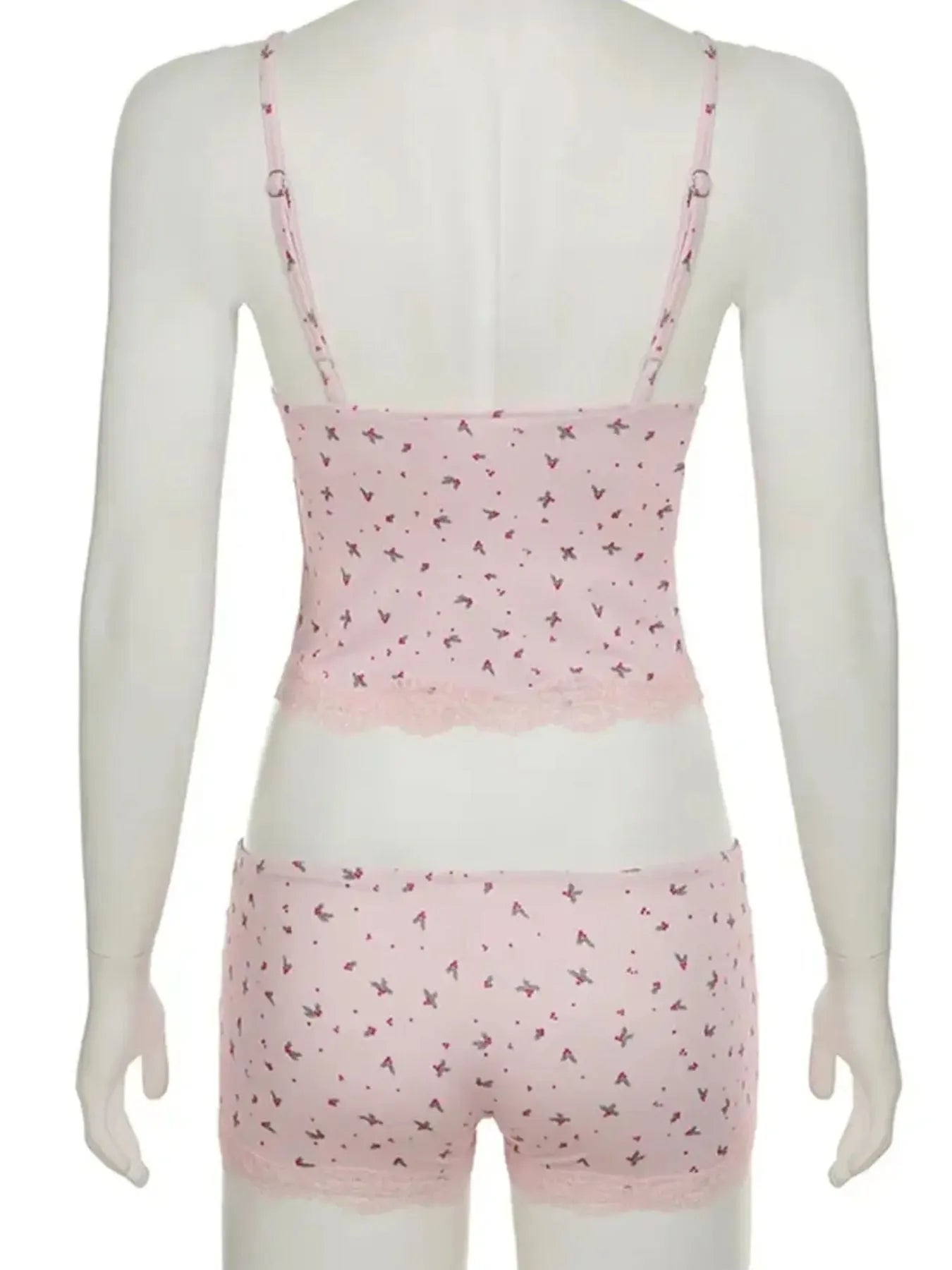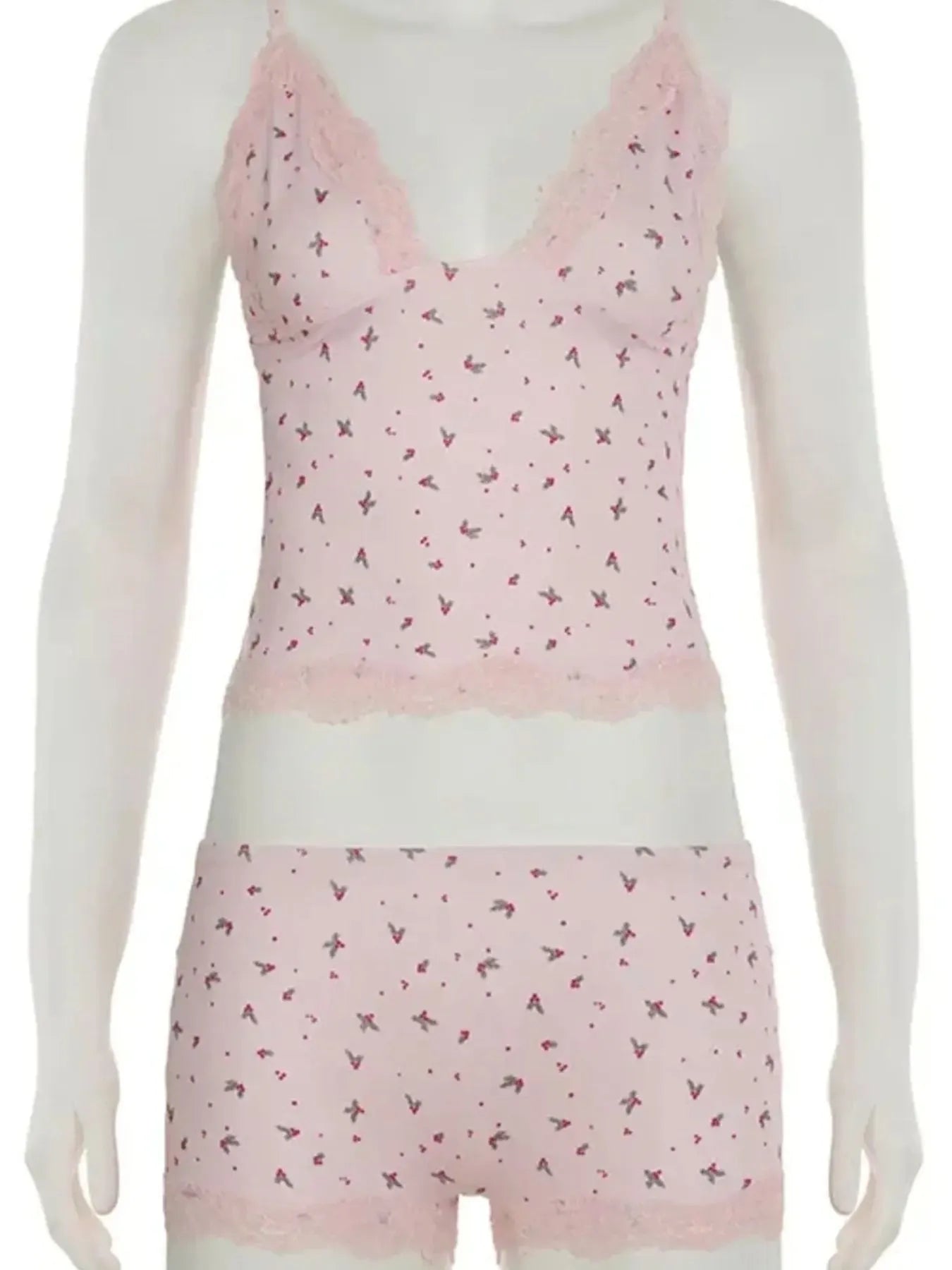 Lace Trim Cami and Shorts Lounge Set DJPT