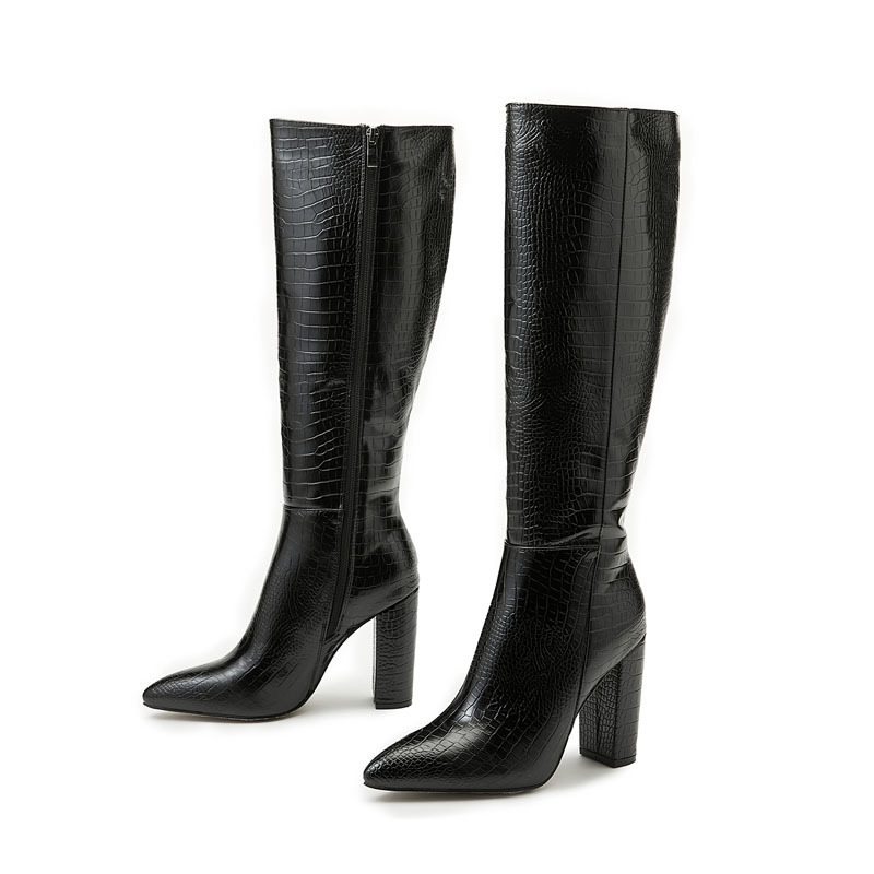 Large-Size High-Heeling Fashion Boots Stone Zips On The Side Of The Zippers Comfortable Coarse And Solid Female Boots High Quality Shoes
