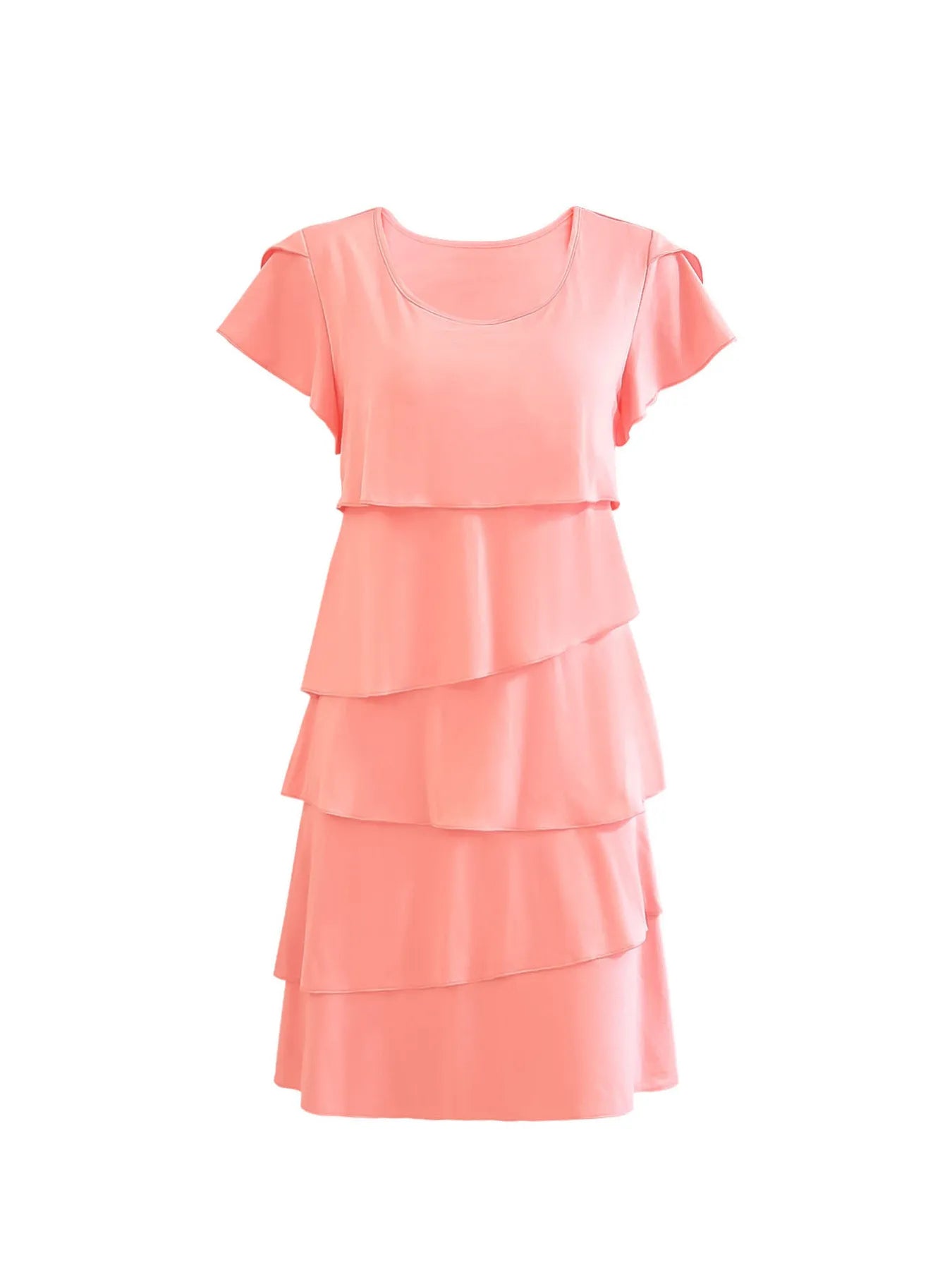 Layered Round Neck Ruffled Sleeve Dress DJPT