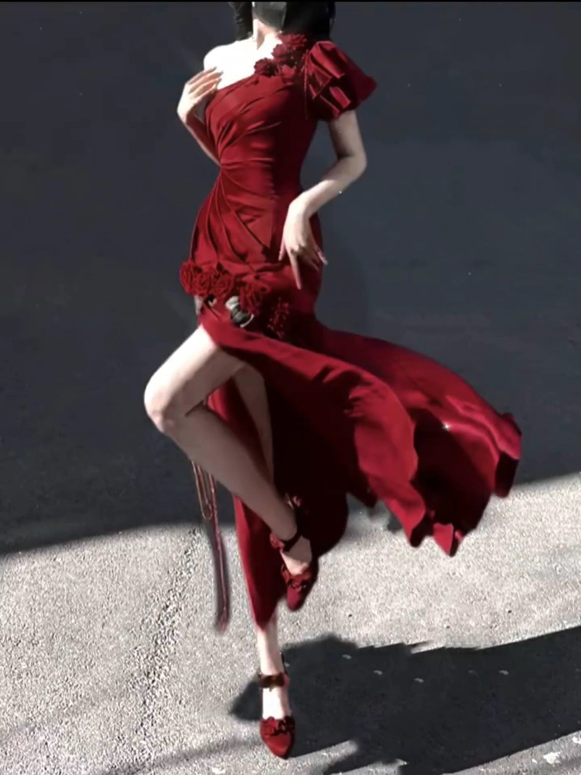 Mermaid One Shoulder Black Satin Party Dress Long Prom Dresses SD1471
