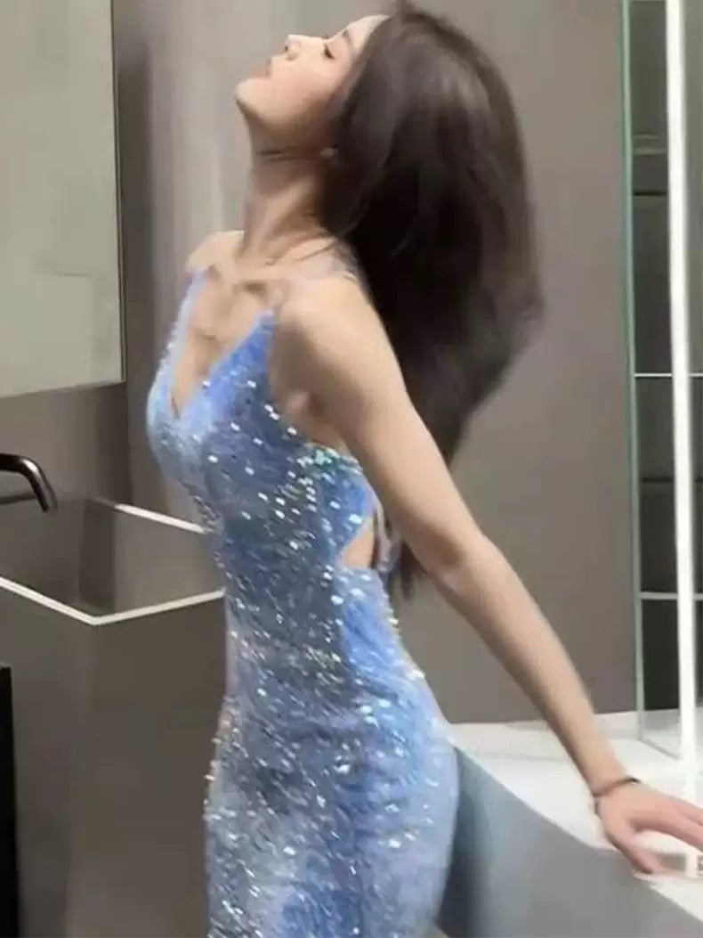 Mermaid Spaghetti Straps Blue Sequin Long Evening Gowns Prom Dress SD2769