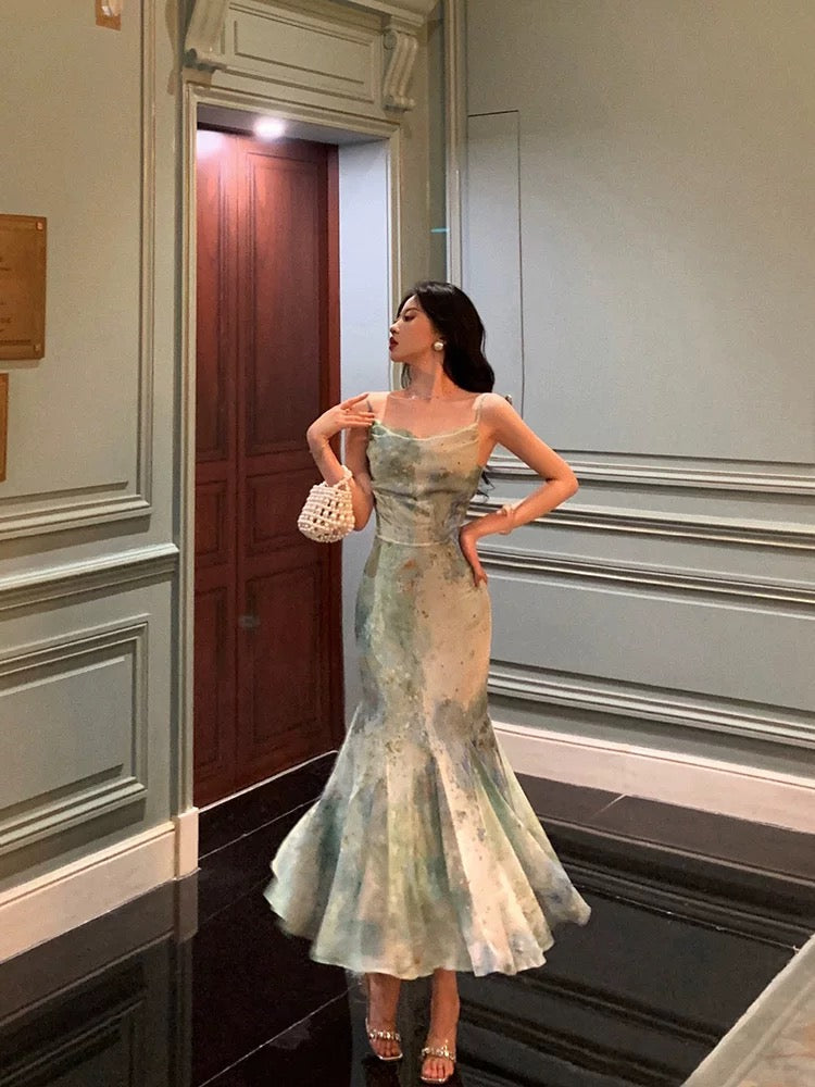 Mermaid Spaghetti Straps Green Lace Date Night Dress Prom Dresses Birthday Party Outfit SD877