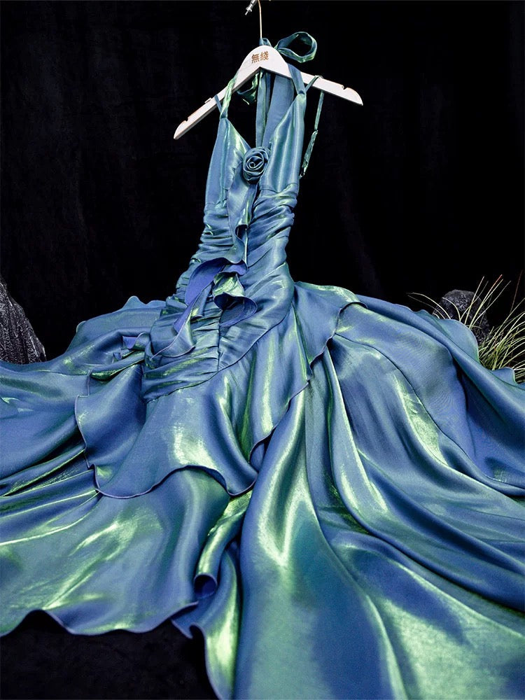 Mermaid Spaghetti Straps Ice Blue Long Length Prom Dresses Birthday Outfits SD482