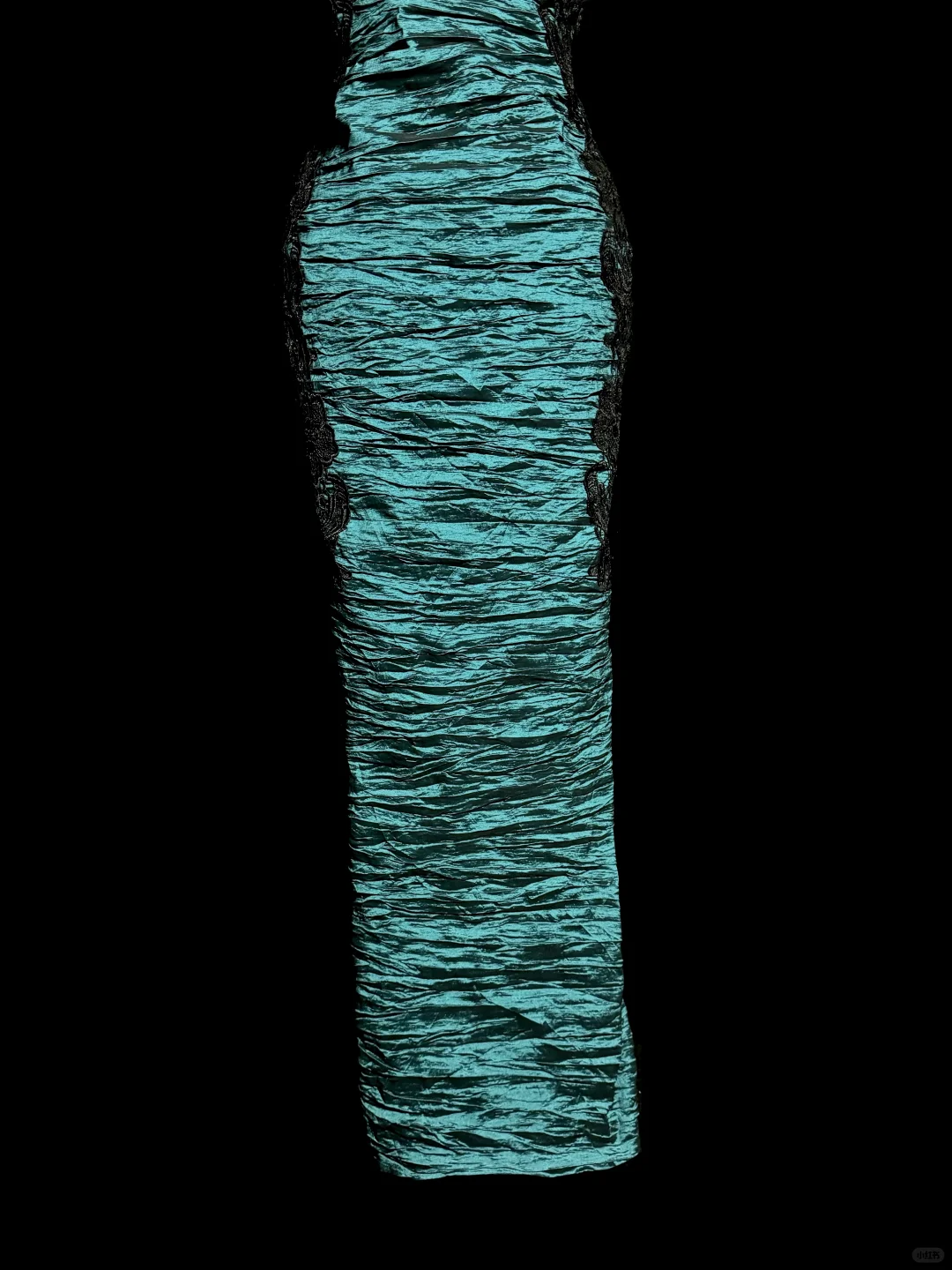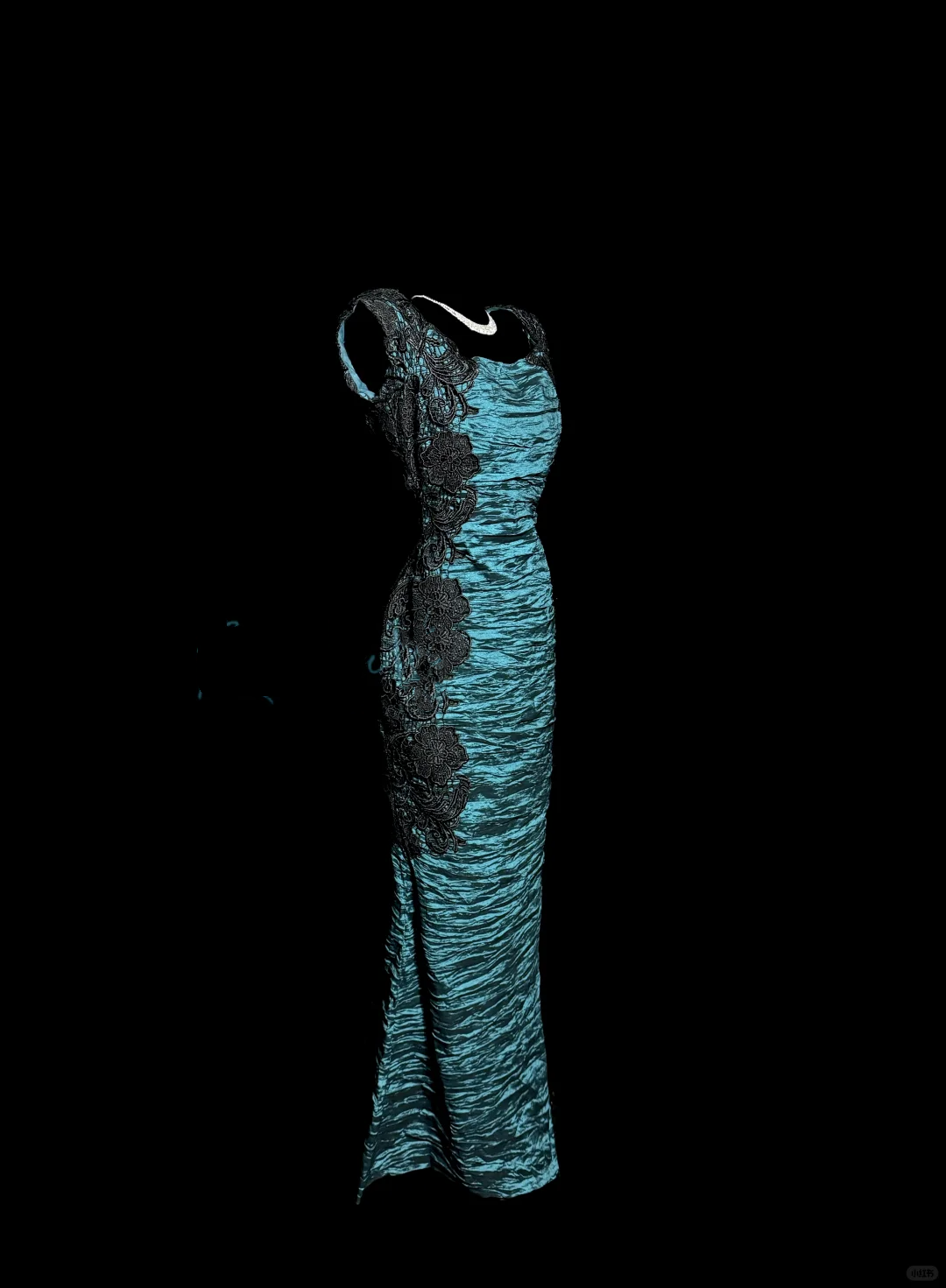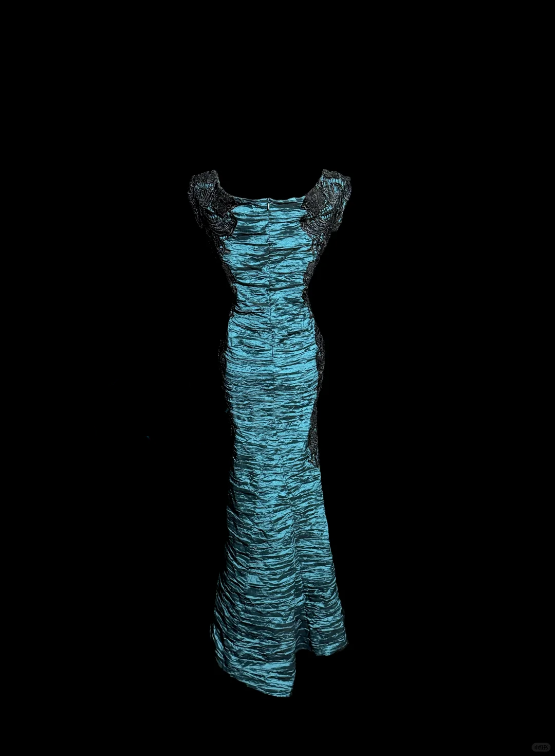 Mermaid Square Neckline Blue Taffeta Prom Dress Ruffle Long Party Dress SD2918
