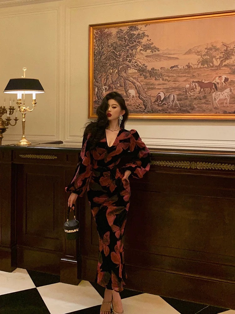 Mermaid V Neckline Long Sleeves Black Velvet Pink Butterfly Prom Dresses Birthday Outfits SD690