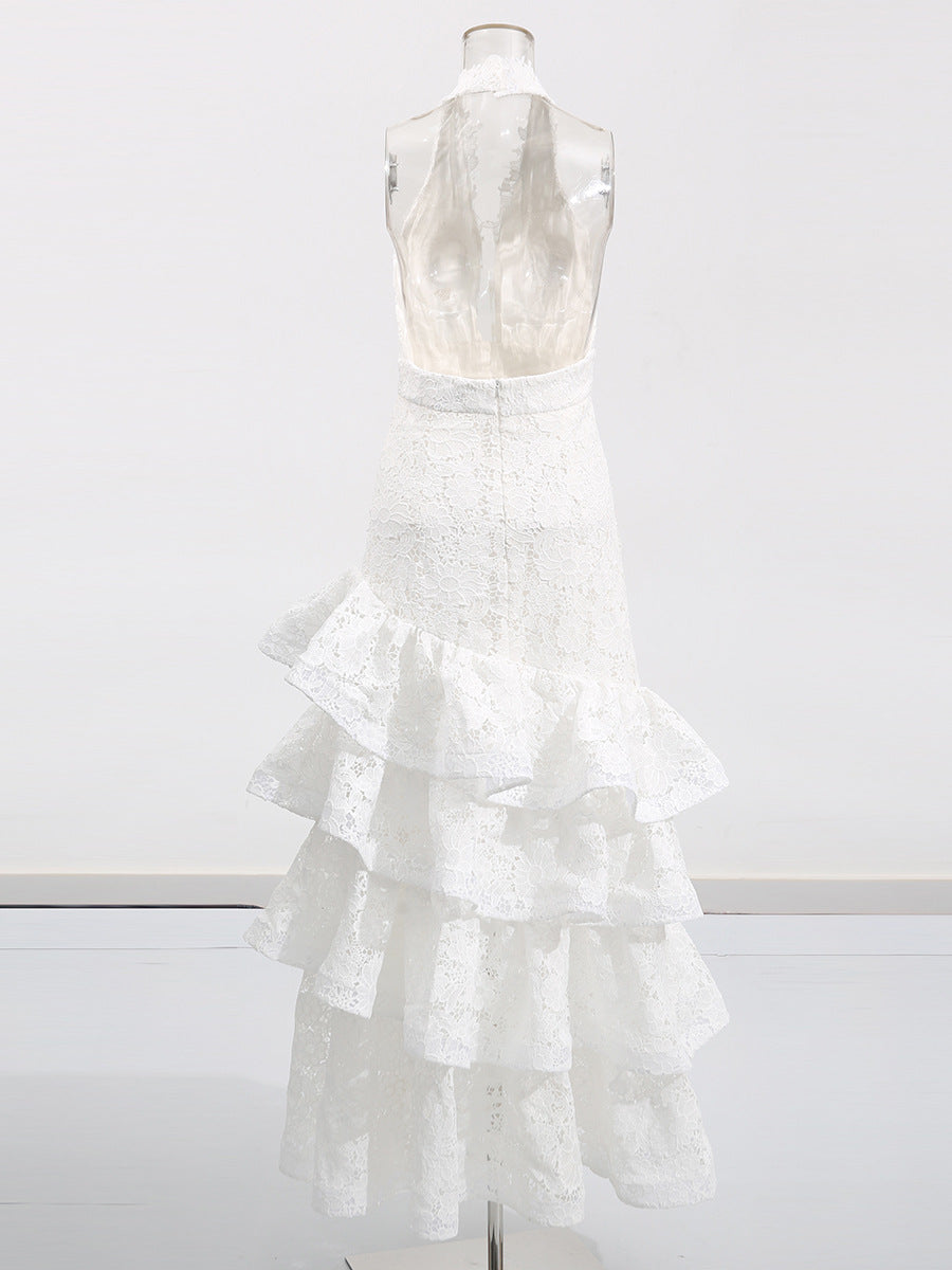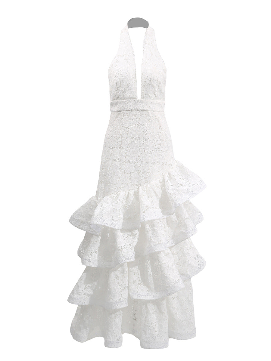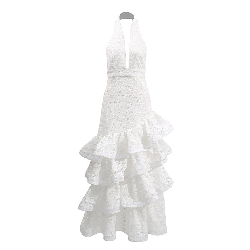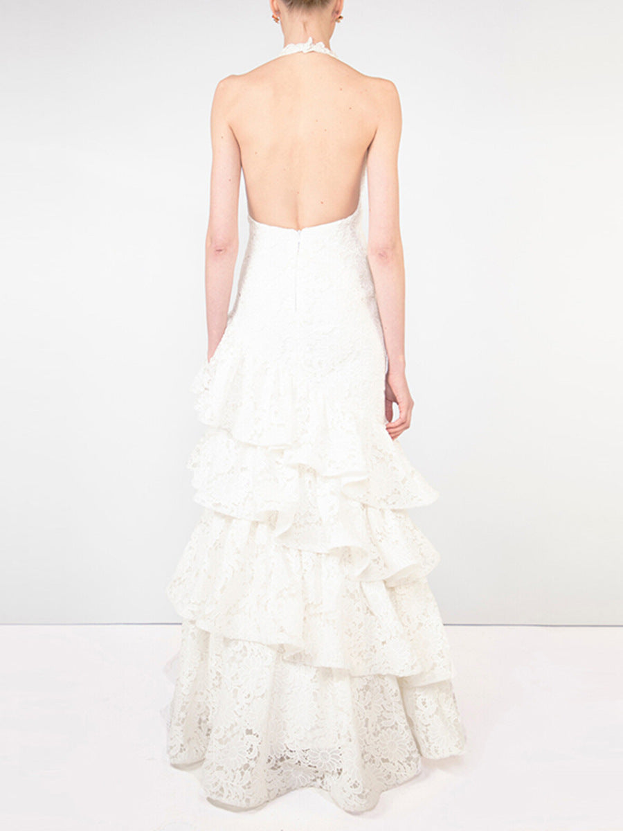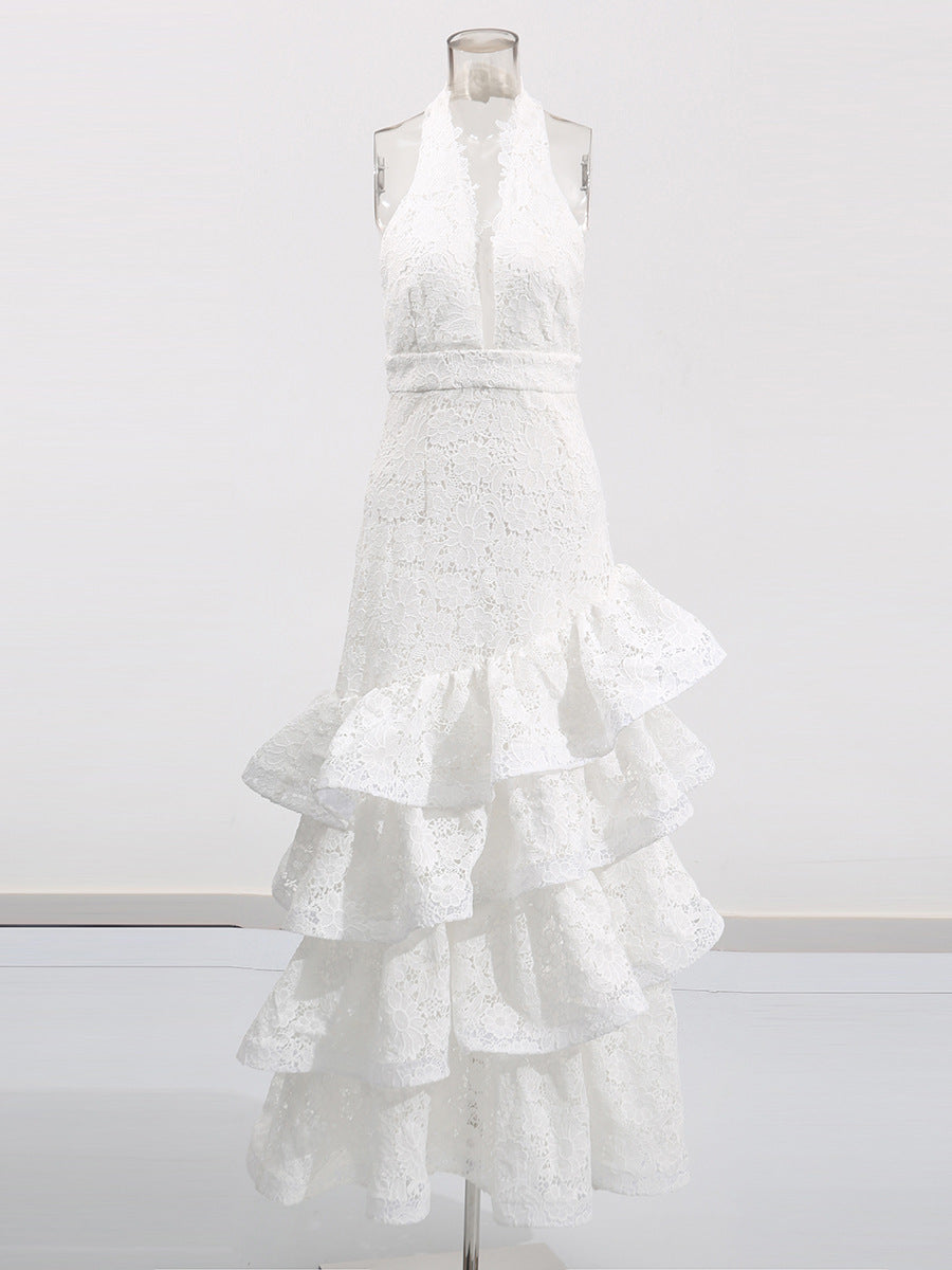 Muse Heavy Industry Embroidered Lotus Leaf Dress 2025 New Women's Summer Hanging Neck Recealing Back Dress