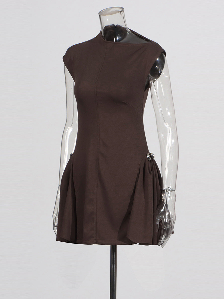 Name Style Wind Irregular Dress 2025 New Collar Metal Buckle To Receive Waist Dress Women's Summer
