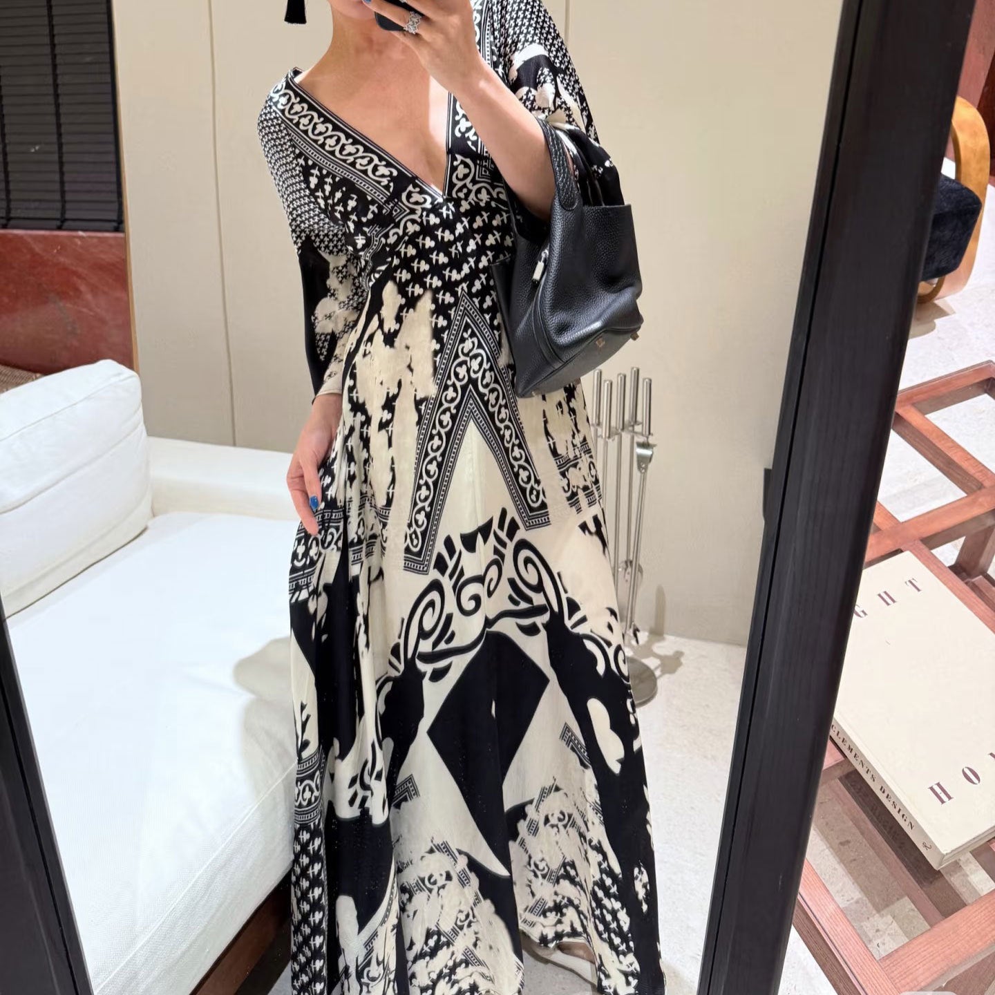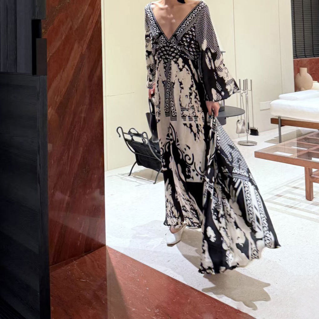 New Elegant V-Neck Print Blouse Dress