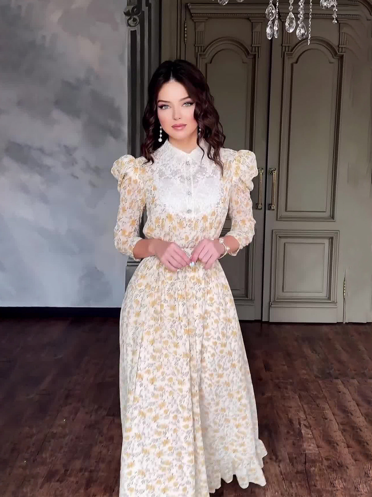 New Fashion Doll Lace Collar Splicing Broken Flower Repair Long Dress