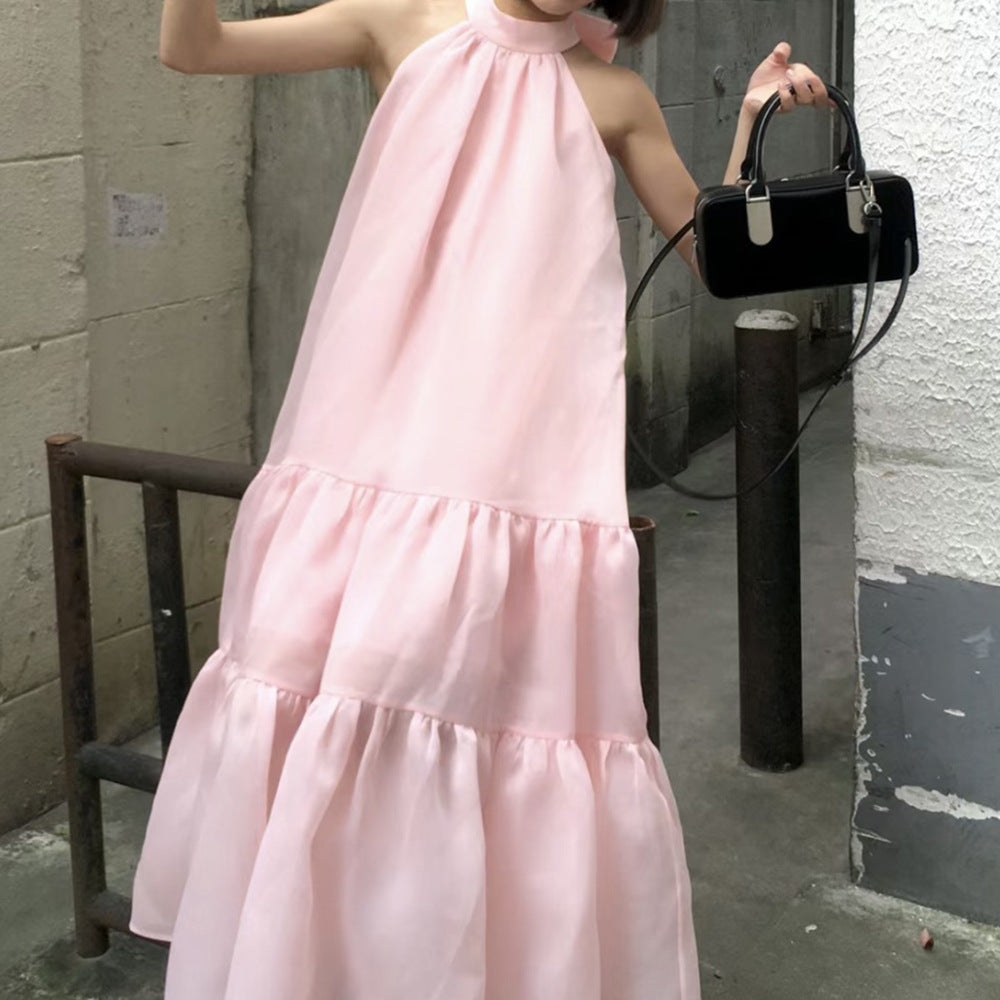 New Girl Feeling Solid Color Sweet Sleeveless Dress Dress Loose Age-Sensitive Atmosphere Long Dress