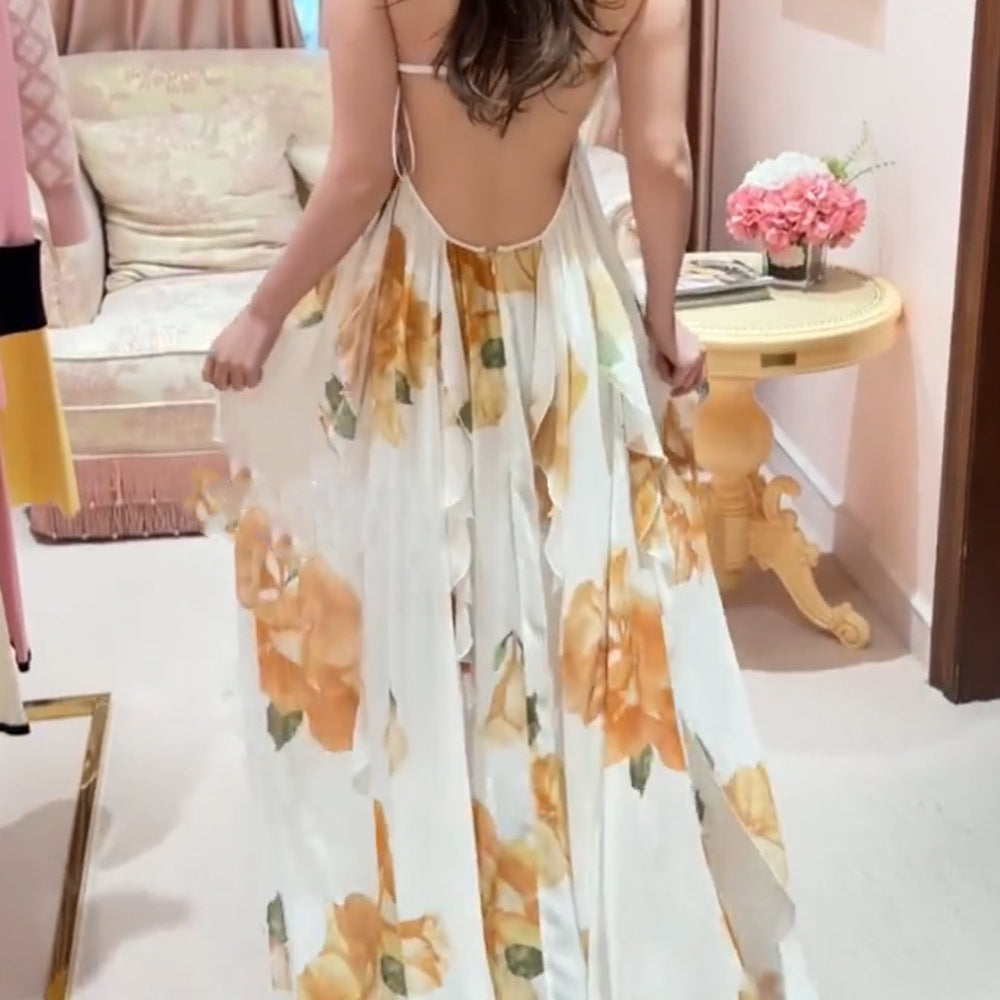New Morning Robe Holiday Wind Lotus Leaf Side Hanging Floral Dress Bra