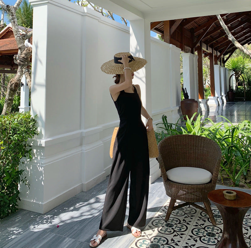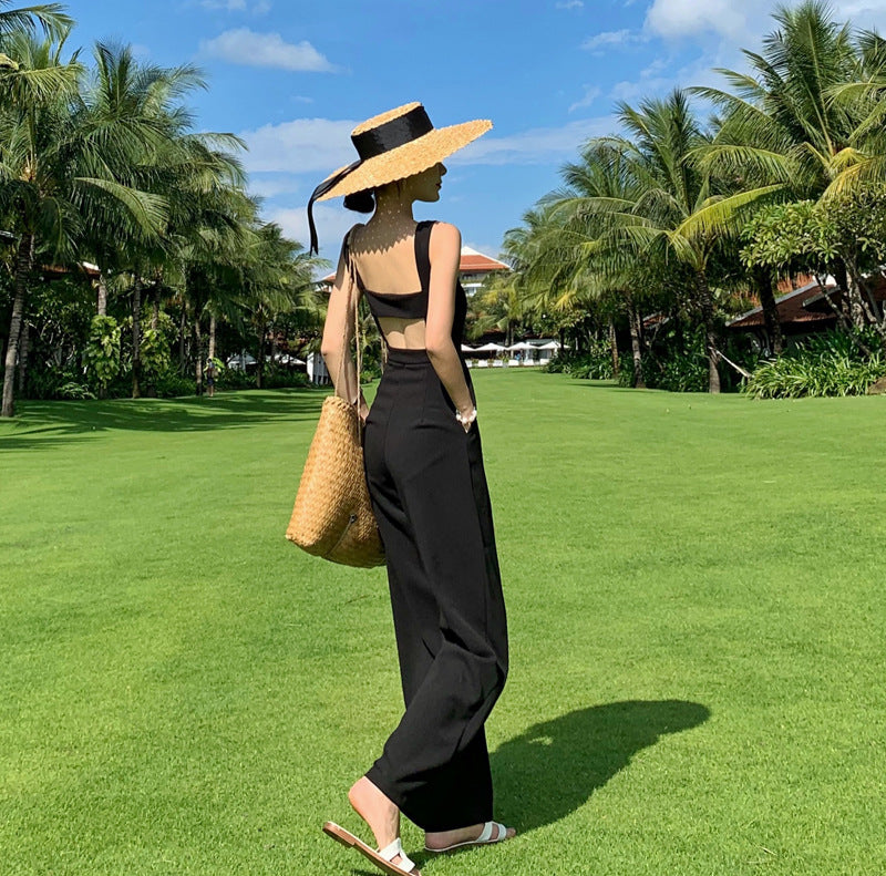New Slings Women's Spring And Summer High-Waisted Black Broad-Legged Trousers With Jumpsuits