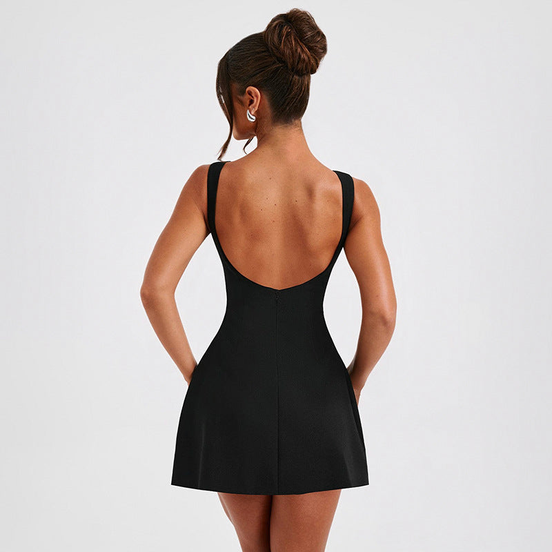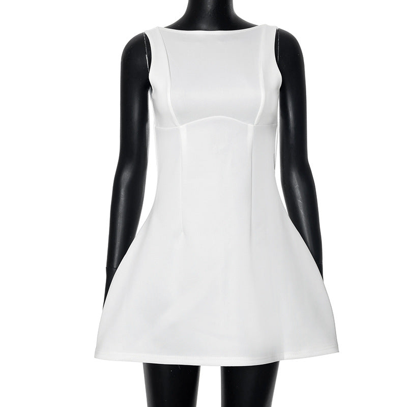 New Women's Solid Color Round Neckless Sleeveless High-Waisted Dress DJPT