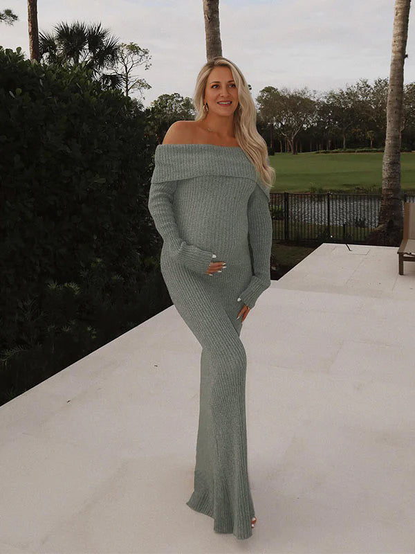 Off Shoulder Solid Color Mermaid Bodycon Elegant Photoshoot Maternity Maxi Sweater Dress Maternity
