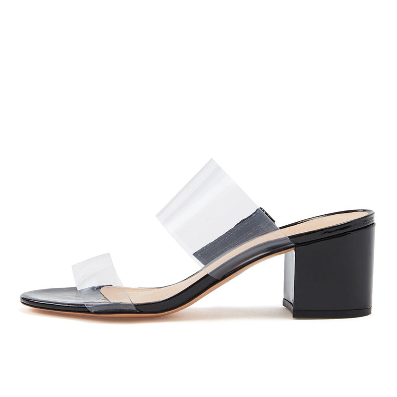 PVC Cork Snake Velvet Velvet Patent PU Coarse Heel Heel Cool Drag Large-Size Dew And Follow-Up High Quality Shoes