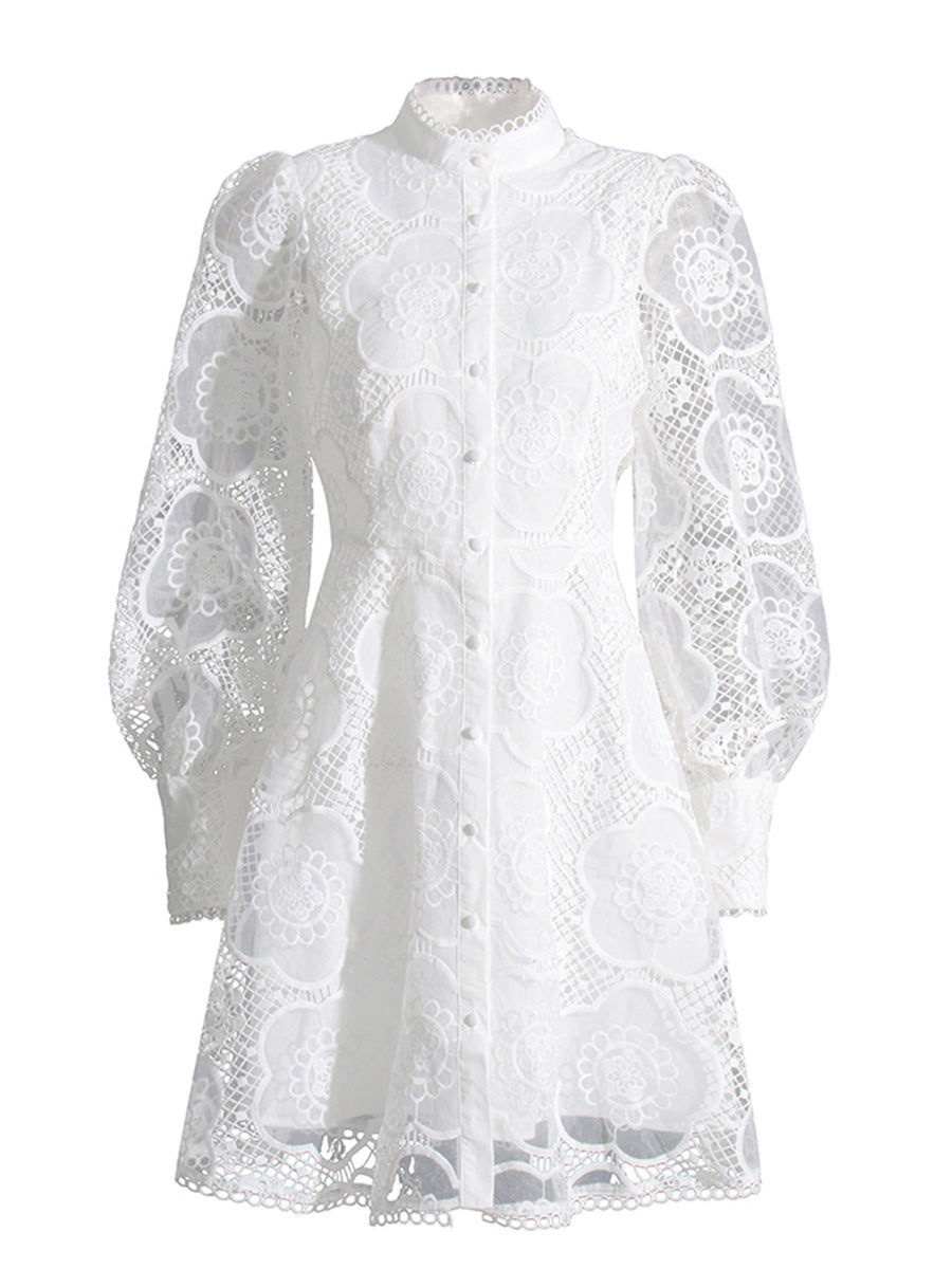 Retro Court Dress Women's Dress 2025 Early Spring New Lace Embroidery Jed Flower Collection Waist Thin Skirt