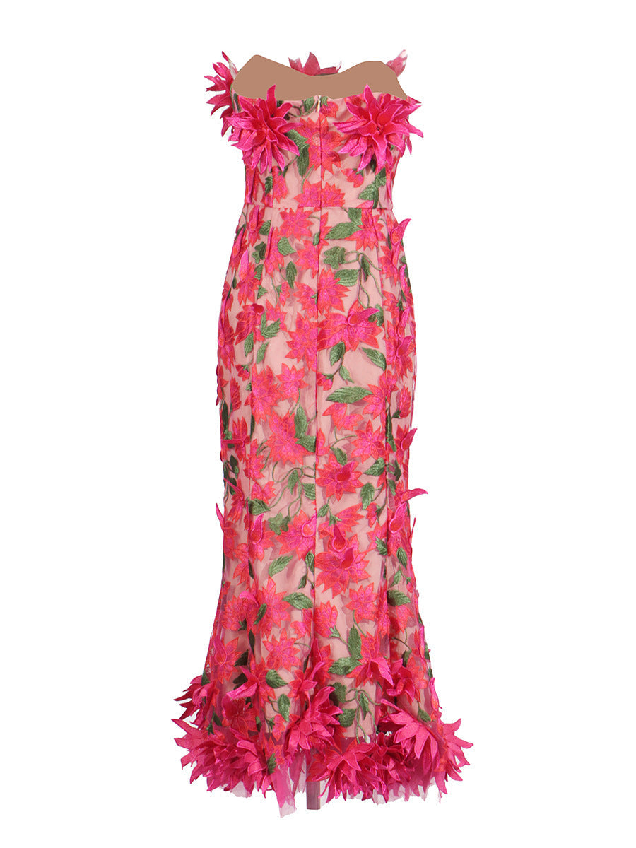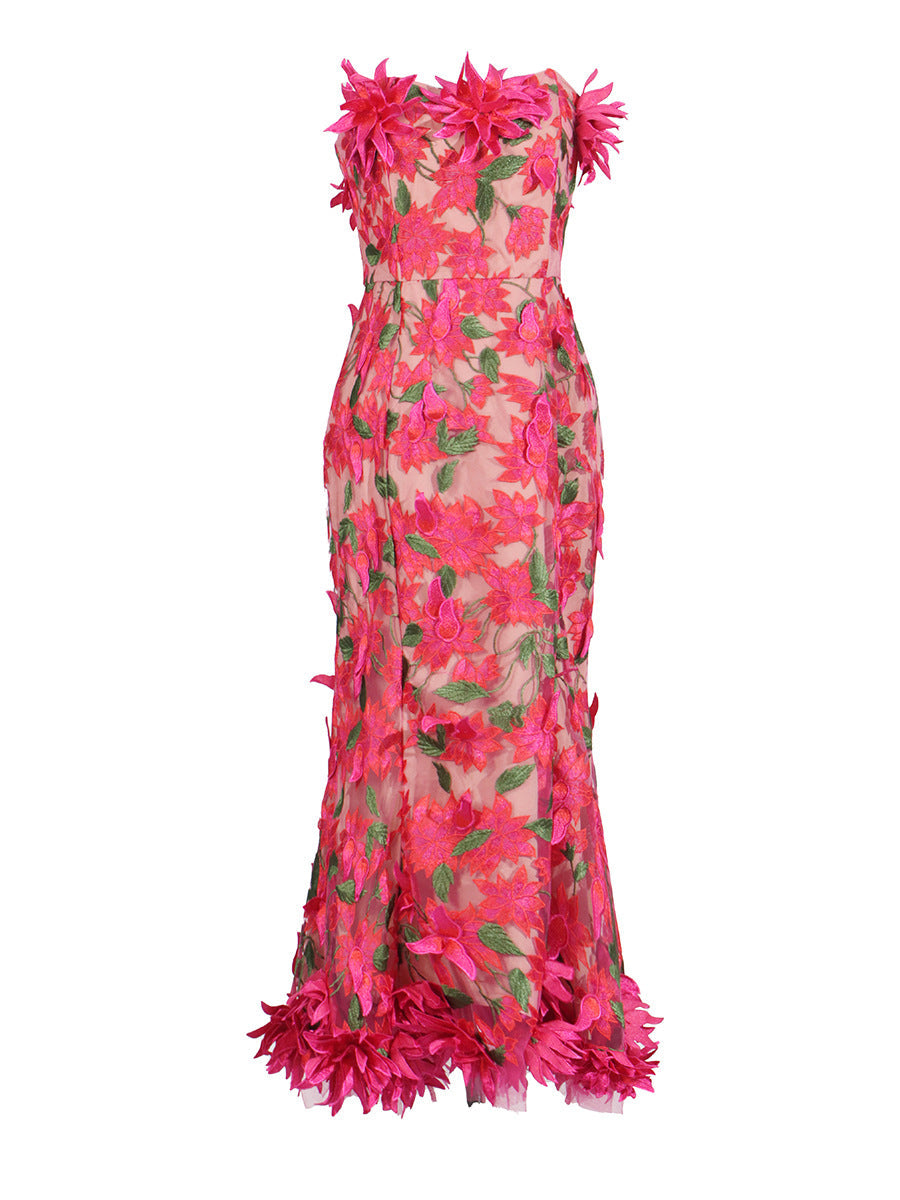 Retro Court Style Thoracic Dress 2025 Summer New Flower Embroidery Mesh Splicing Bag-Groom Dress Woman