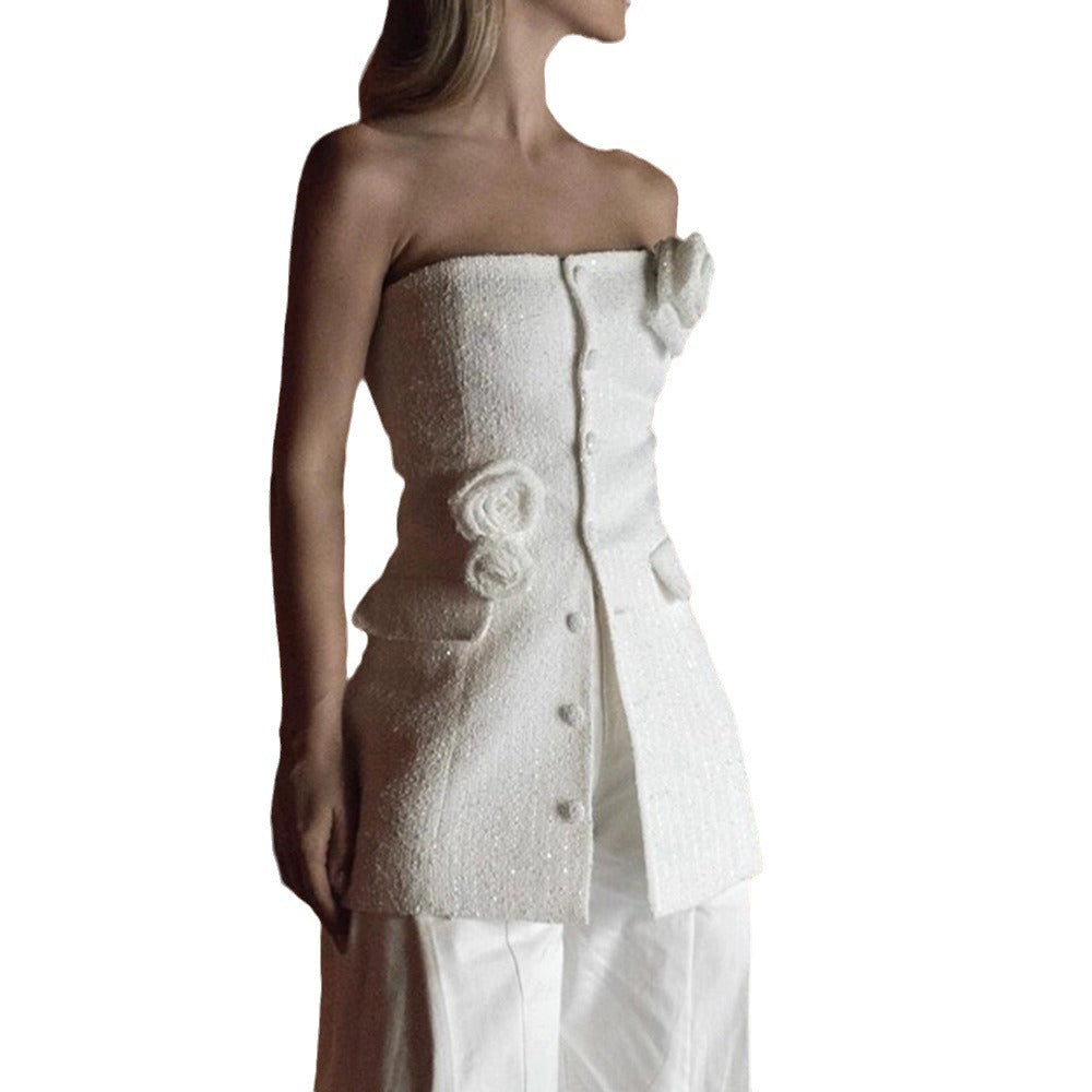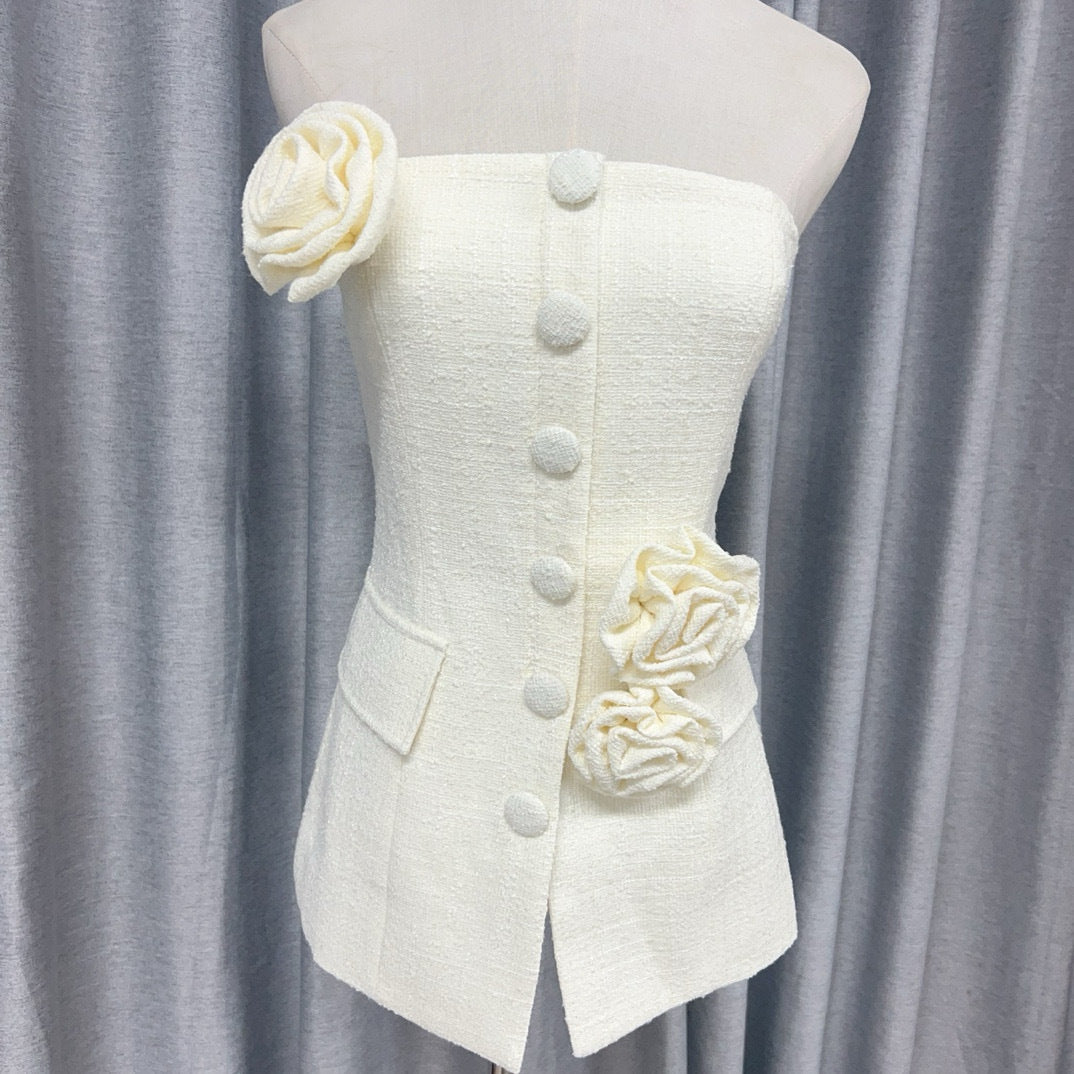 Sanguan White Rose Set 2024 New Single-Breasted Breast-Wear Flower Top High-Waisted Broad Leg Trousers