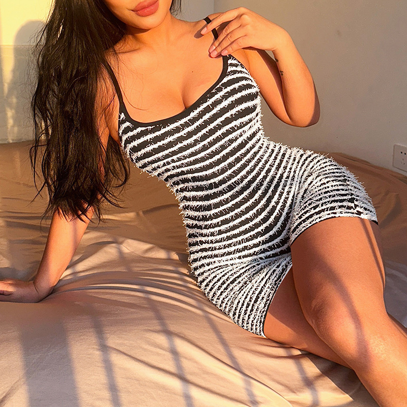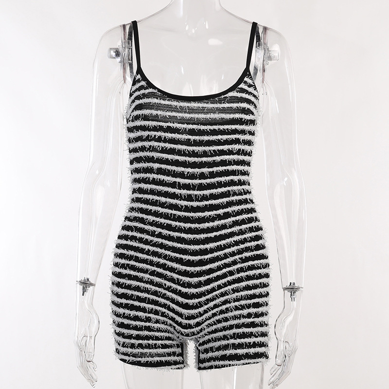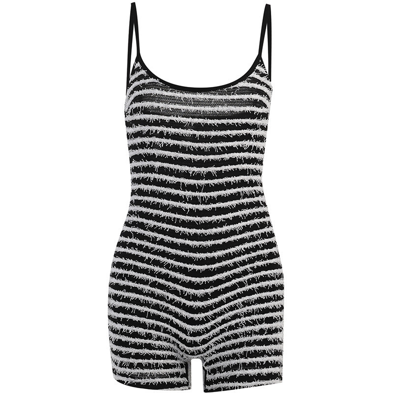 Sexy Sling Black And White Stripes To Close Waist Thin Hottie Show Back Hip Conjoined Shorts Woman DJPT
