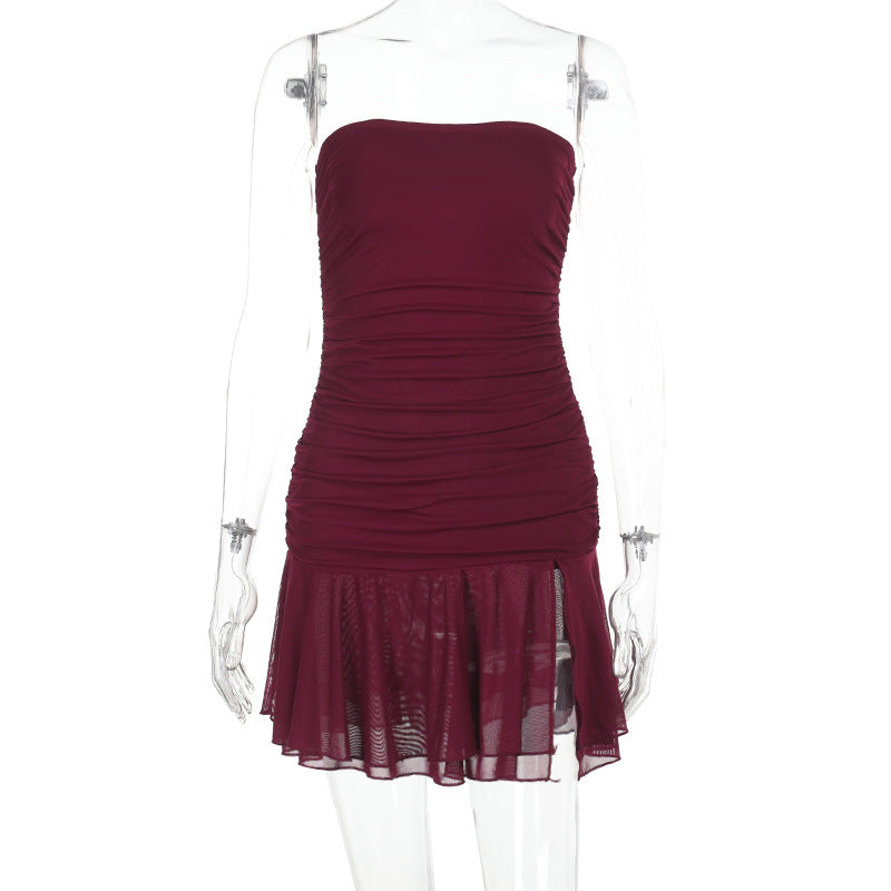 Sexy V Sexy V Sexy Netɴ Brasless Cuffed Bleeved Bleeved Open Fork Dress DJPT