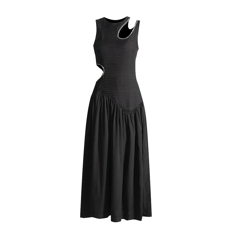 Sexy Wind Niche Design 2025 Summer Collar Hollow Folded Women's Dress In The Long Solid Color Folds