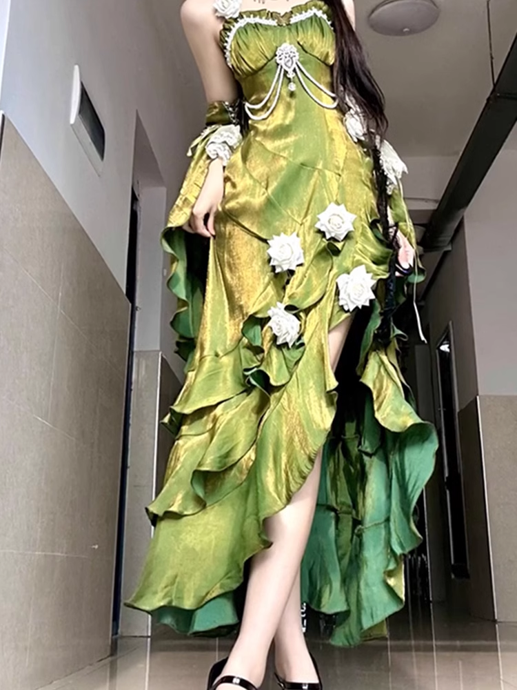 Sheath Irregular Ruffled Spaghetti Straps Women's Green Birthday Party Dresses SD437