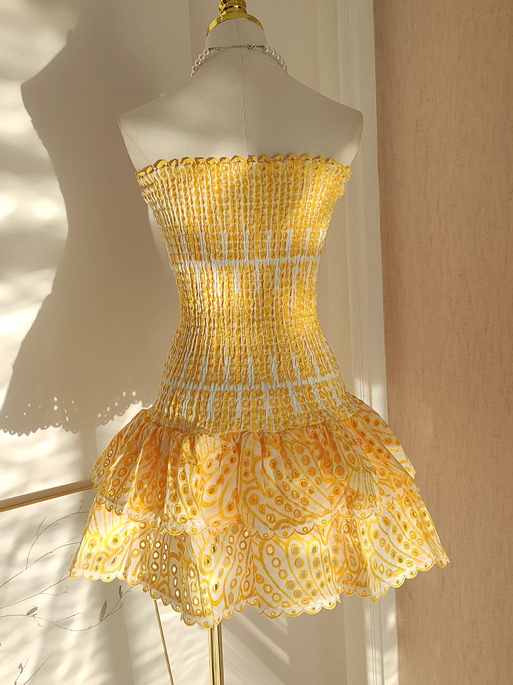 Sheath Strapless Yellow Lace Vacation Dress Short Birthday Dresses SD120