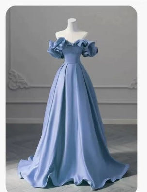 Shoulder Banquet Evening Dress Dress Female-Singen-Faced Yellow Temperament Light Luxury Niche High-End Art Exam Host Dress