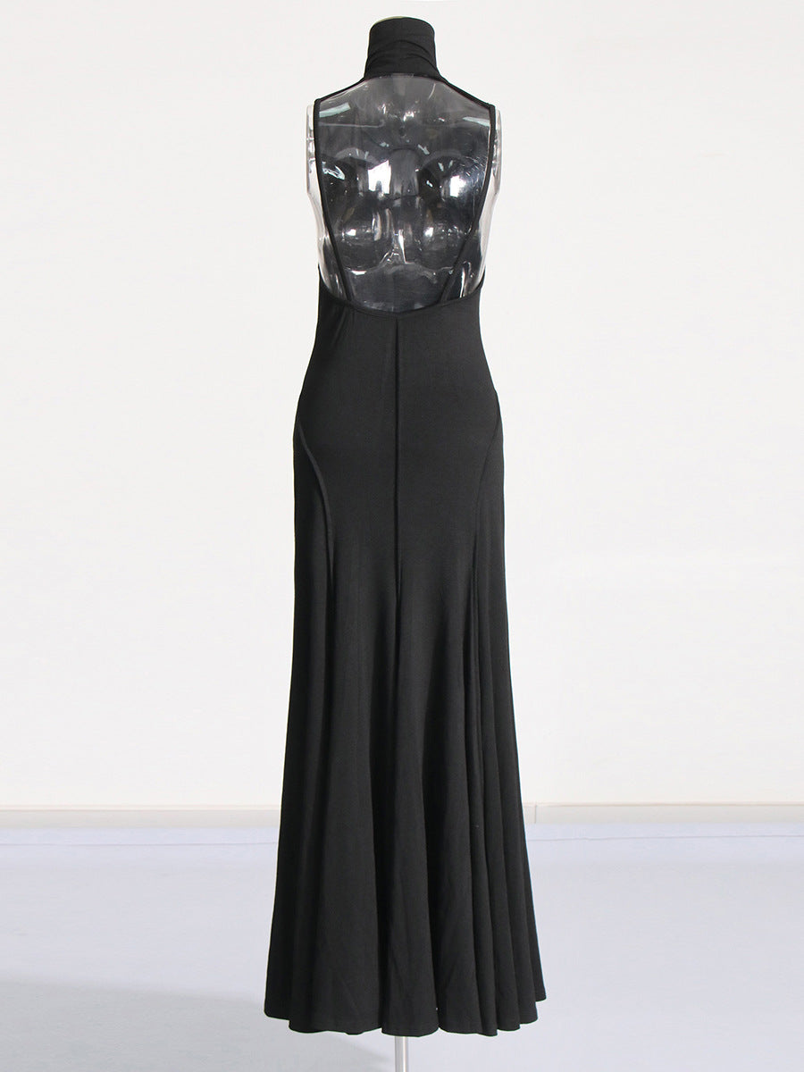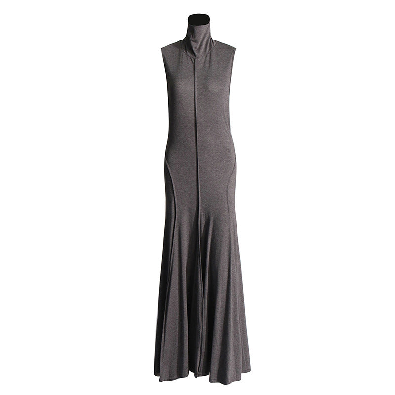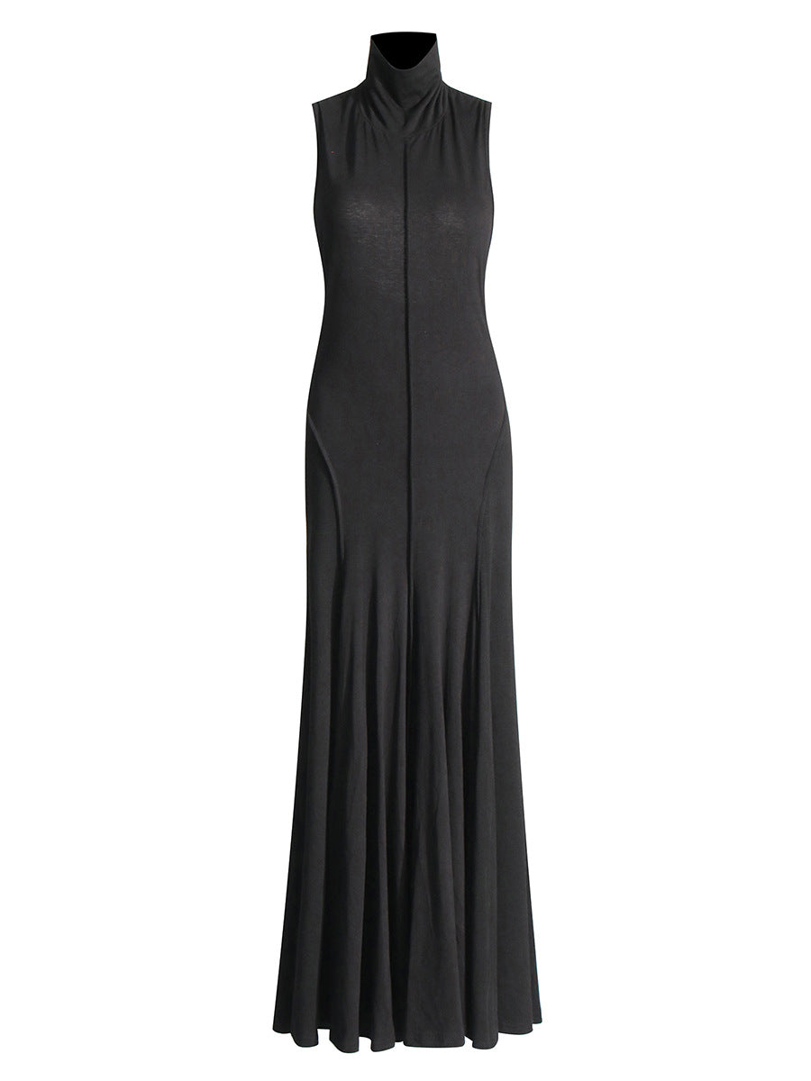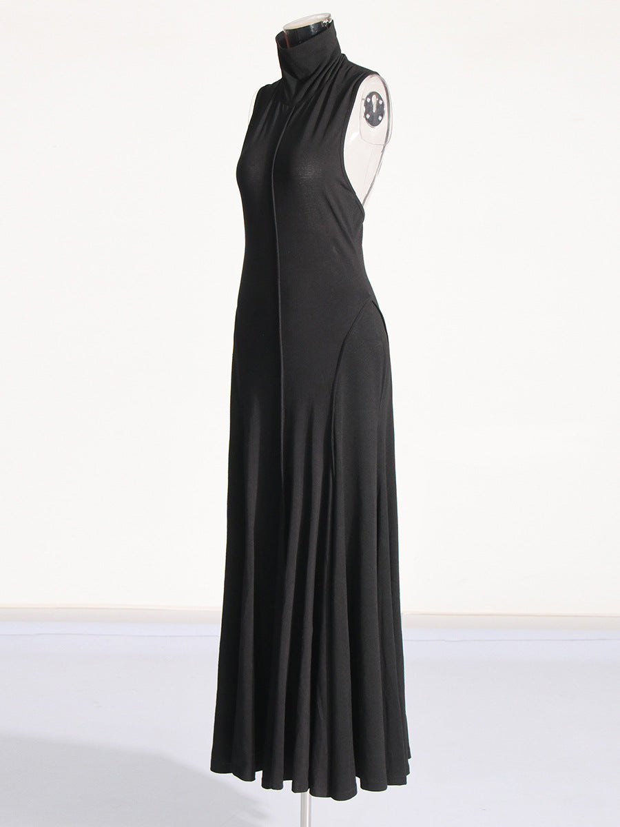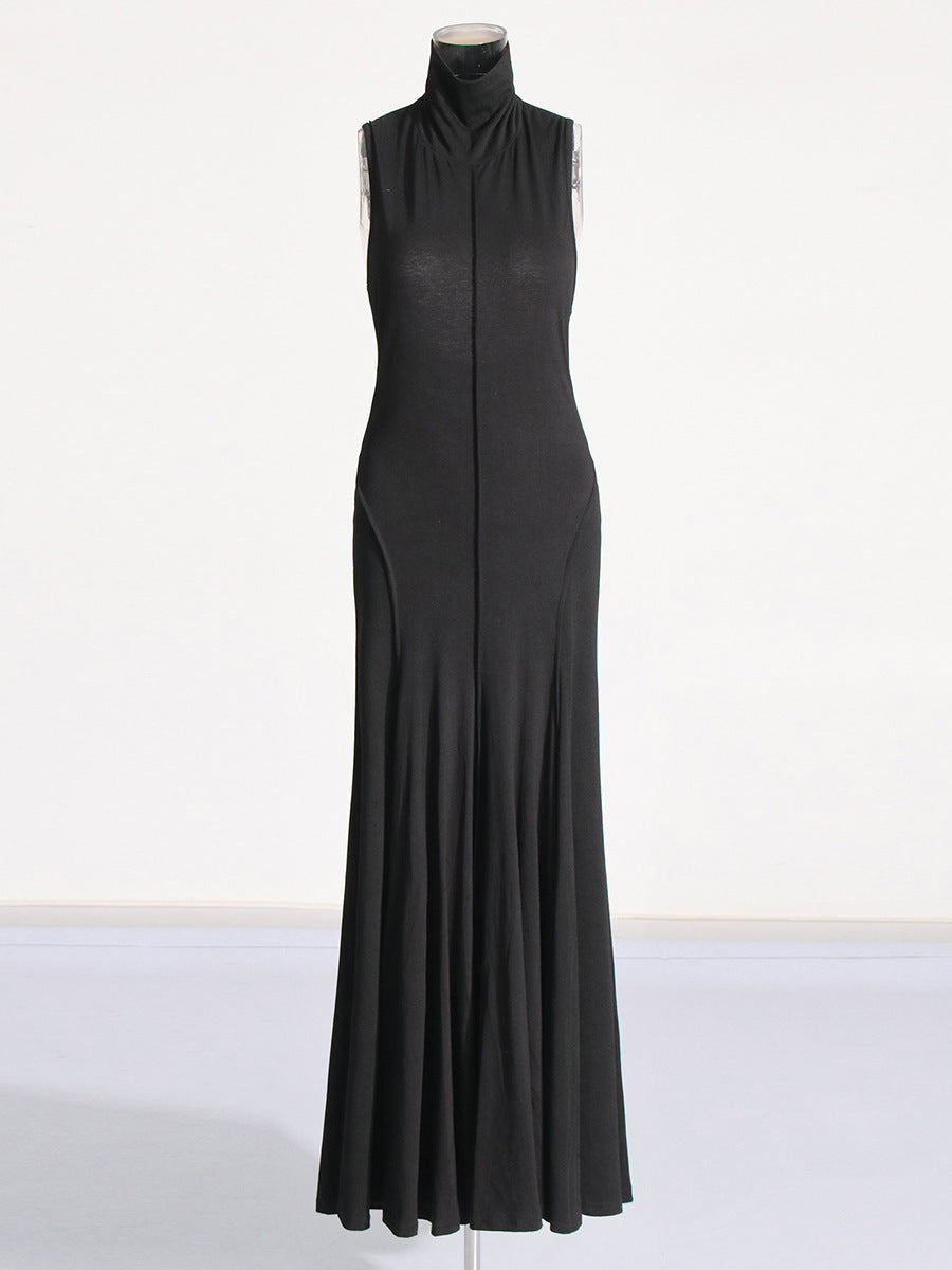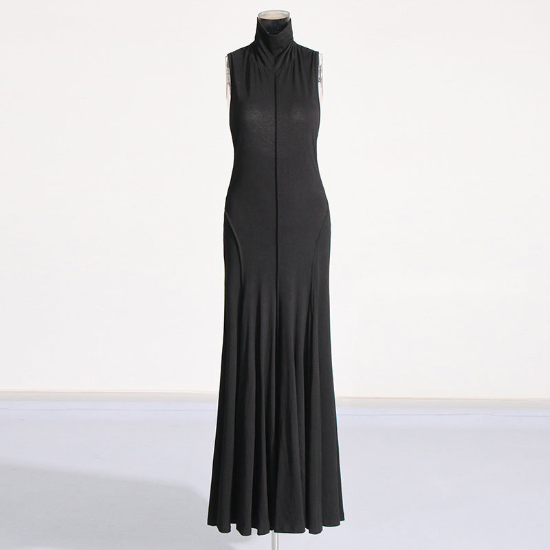 Simple 2025 Spring New Collar Sleeveless Back Design Long-Folded Solid Color Dress Woman