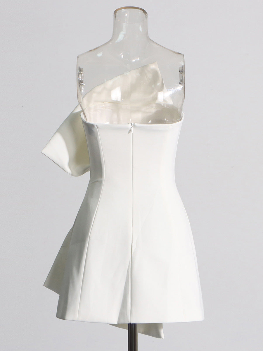 Sister Style Dress 2025 Summer New Bow Three-Dimensional Decoration Asymmetric Thoracic Dress Woman