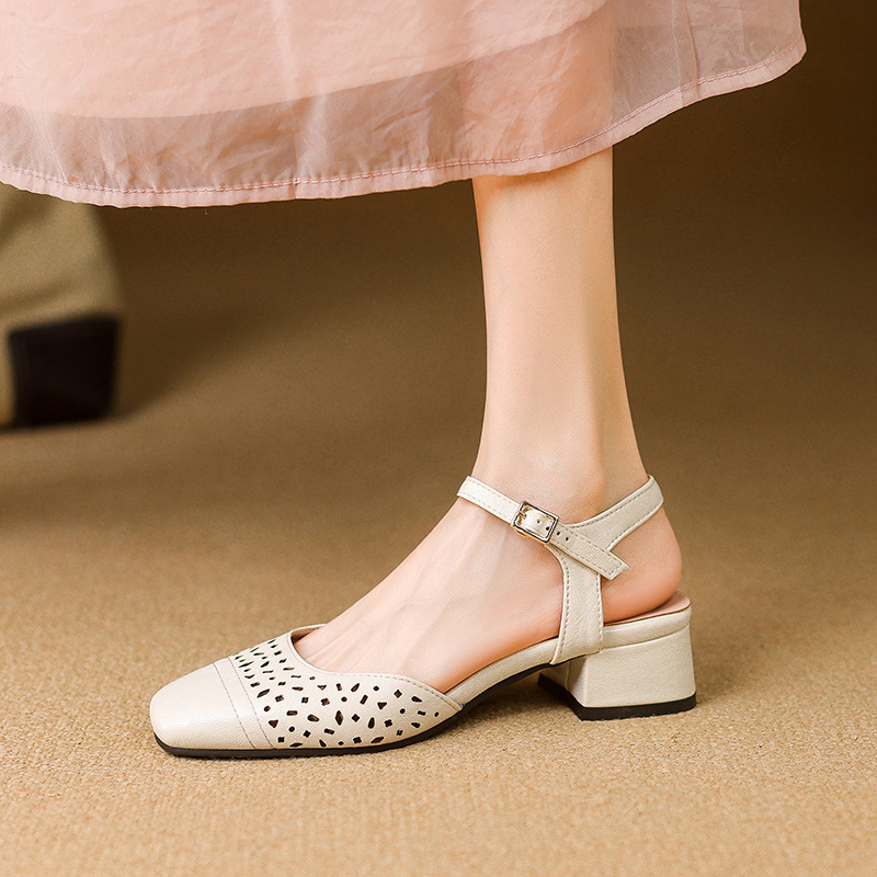 Size Women's Shoes Wrapped Head Thick Heel One-Word Sandals Women 2025 Summer New Low Heel Women's Shoes High Quality Shoes