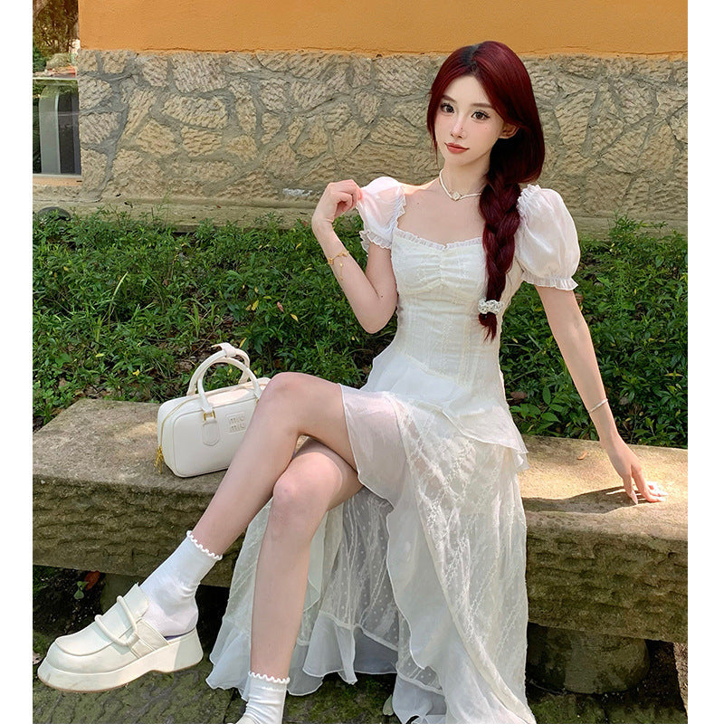 Sleeve Dress Women's Summer New Pure Chiffon Fairy Irregularly Harvesting Seaside Vacation Dress
