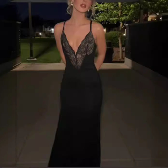 Sling Lace Dress Black Dress With Built-In Body Shaping HZ0628