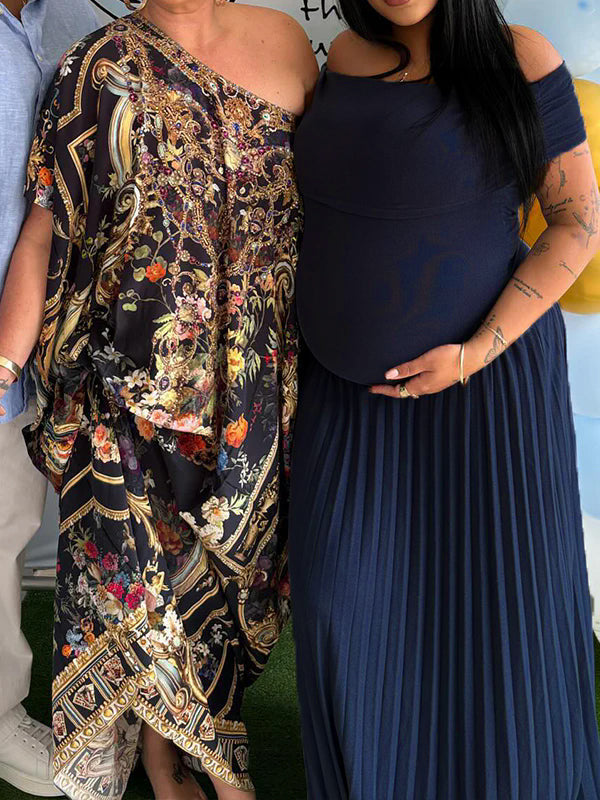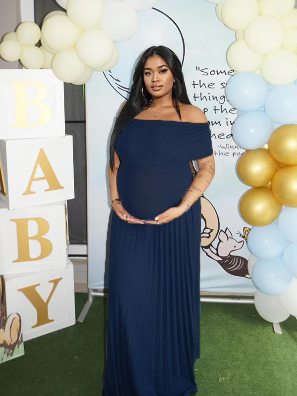 Solid Color Ruched Pleated Off Shoulder Big Swing Elegant Cocktail Party Maternity Photoshoot Baby Shower Maxi Dress Maternity