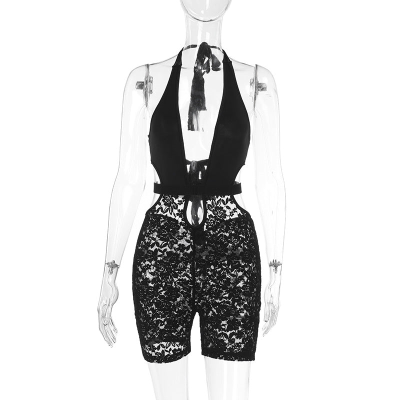 Spring 2025 New Hottie Sexy Lace Deep V Hollow Jumpsuit Women's Clothing DJPT
