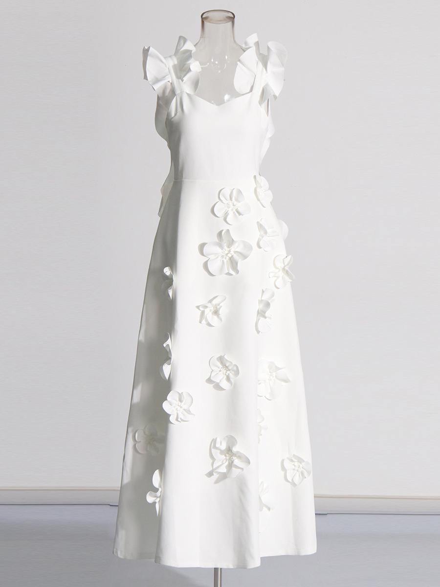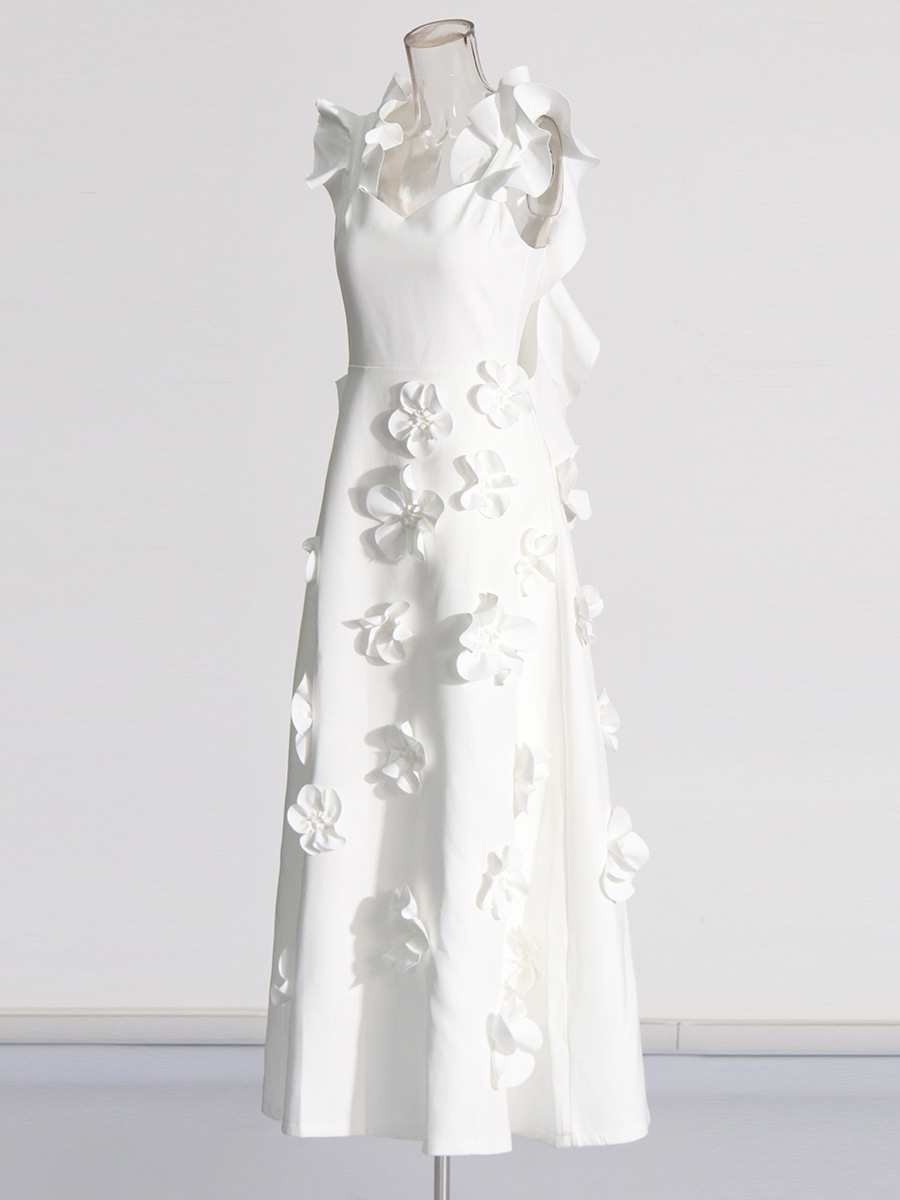 Style Dress 2025 Summer New French Three-Dimensional Flower Decoration Slings Swing Dress Women's Dress
