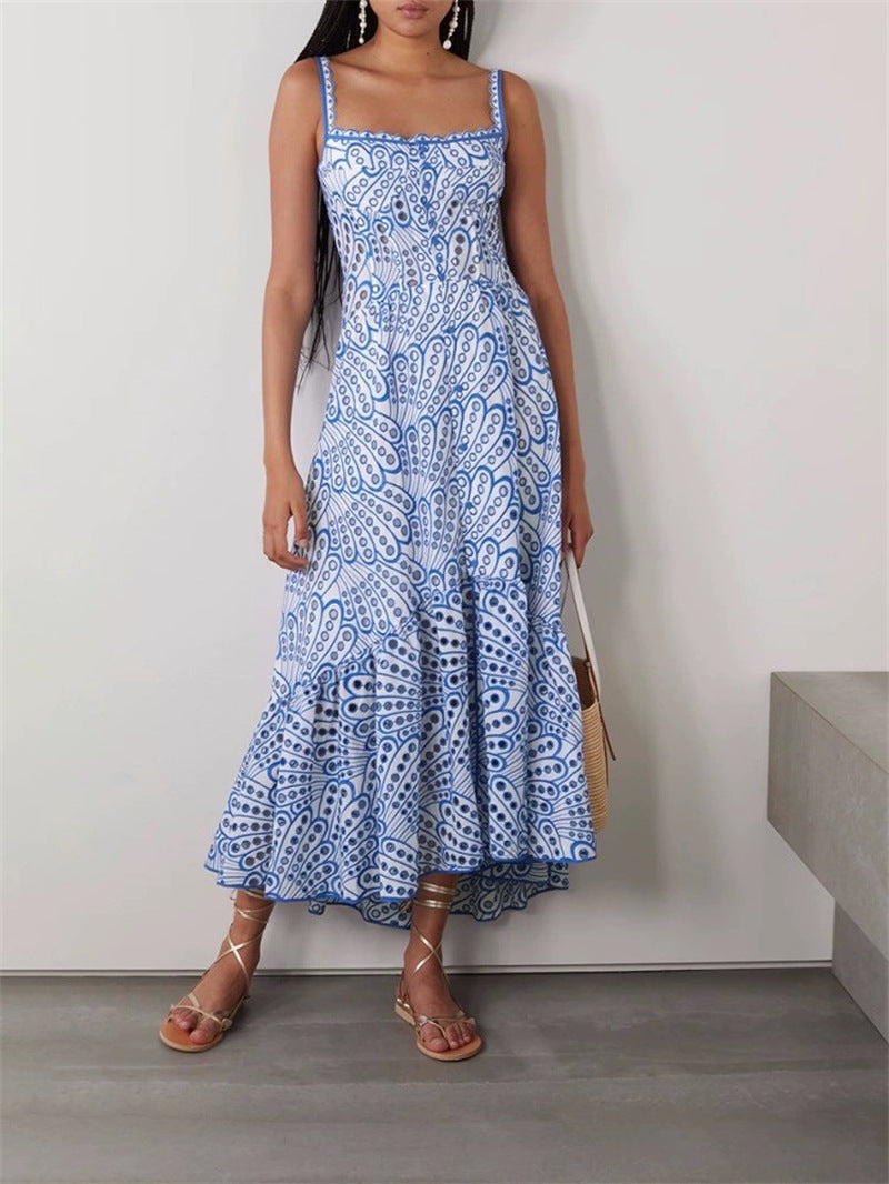 Summer Spanish Niche Brand Design Goddess Temperamental Slinging Irregular Fishtail Dress