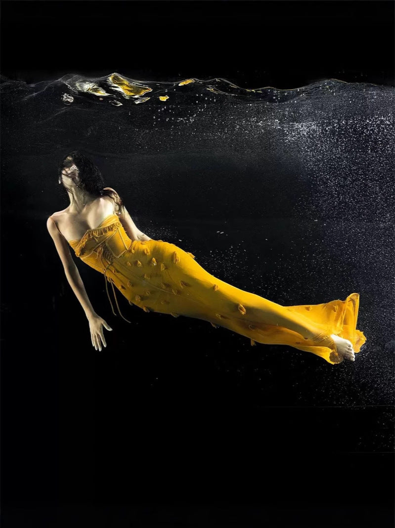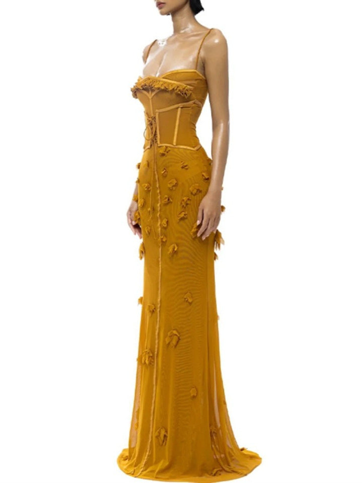 Summer Vietnamese Niche Brand Sexy Sling Design Three-Dimensional Spikes Elastic Mesh To Close Waist Dress