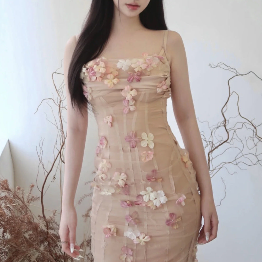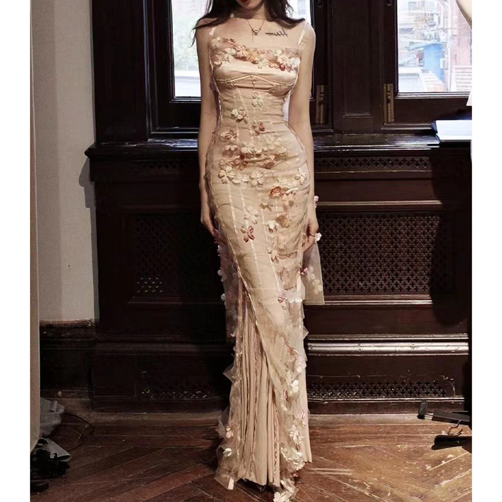 Super Fairy Flower Net Dress Romantic Chic Waist Fishtail Sling Skirt 2024 New